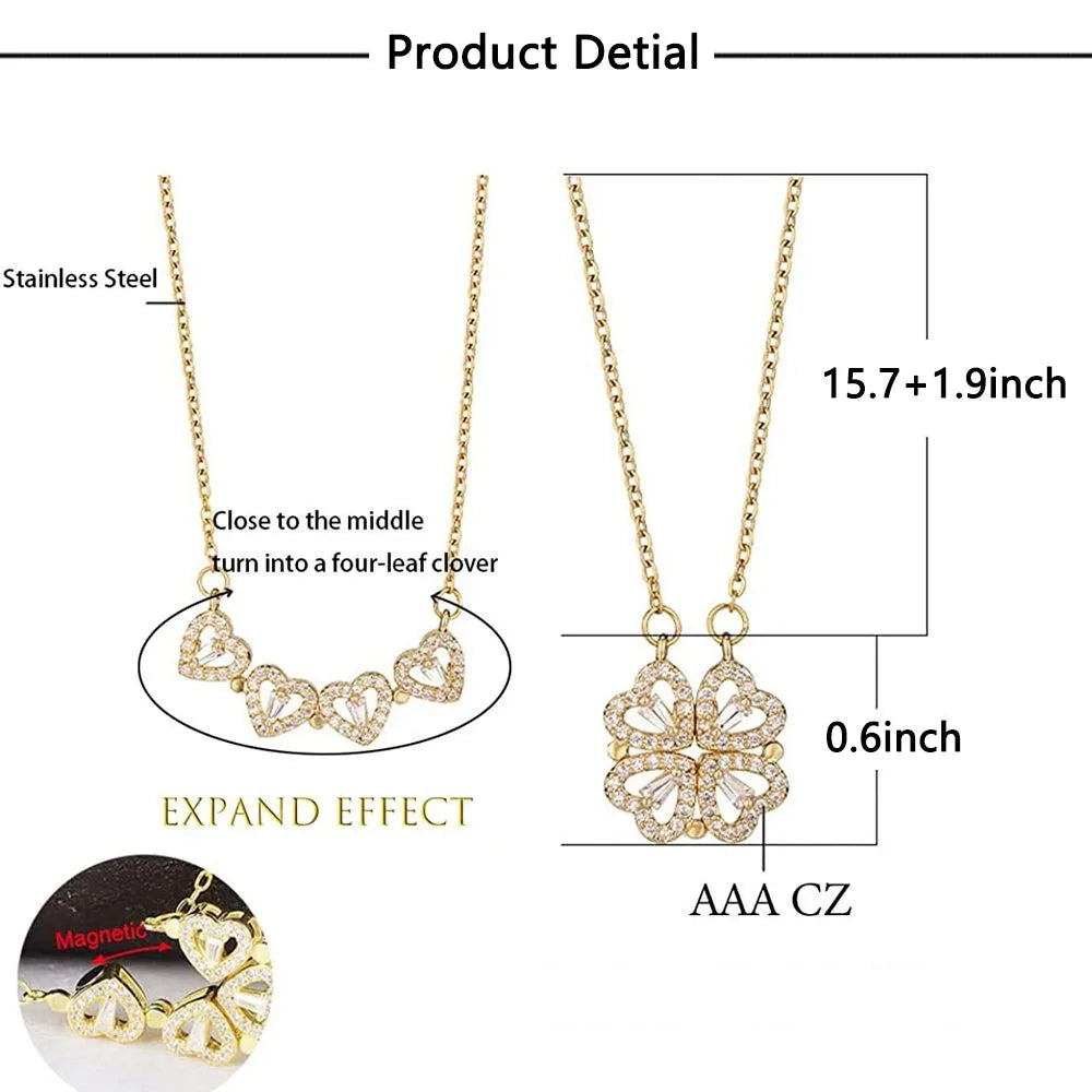 2023 Lucky Four-leaf Clover Necklace Women Magnet Heart Pendant Necklace Clavicle Chain Charm Wedding Jewelry Anniversary Gift