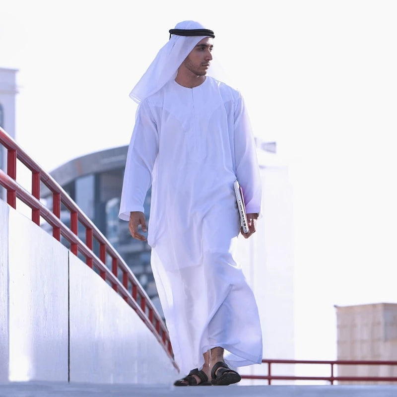 Quality material ,the thobe and keffiyeh make from polyester material ,which is very soft and friendly to skin, lightweight and breathable, cool ,sweat absorption, anti sensitive.