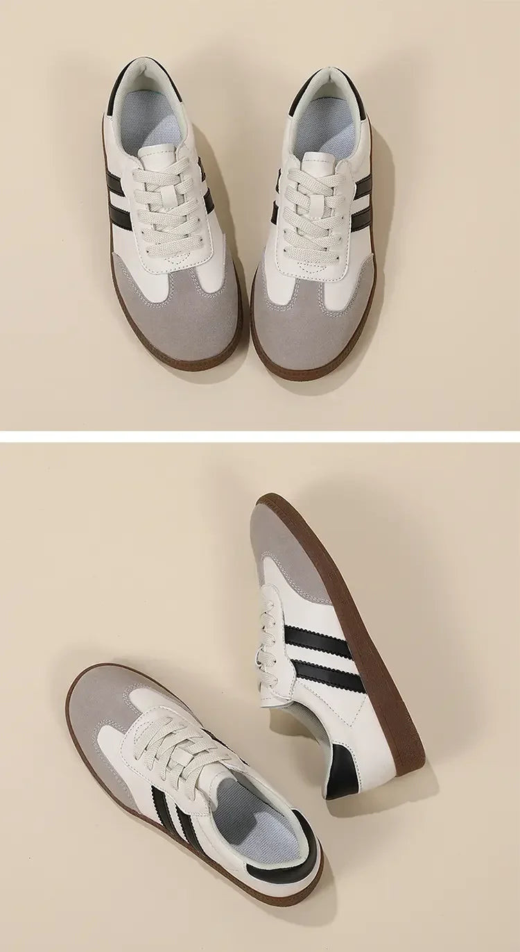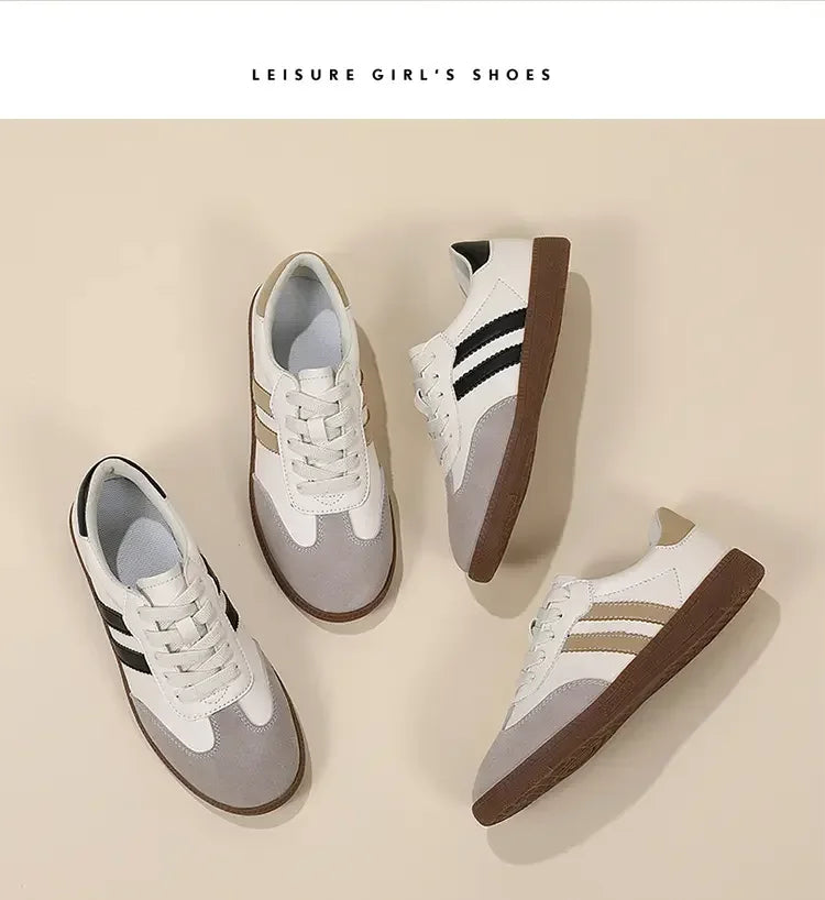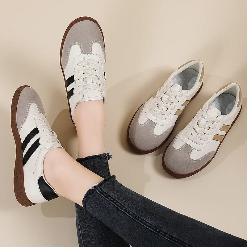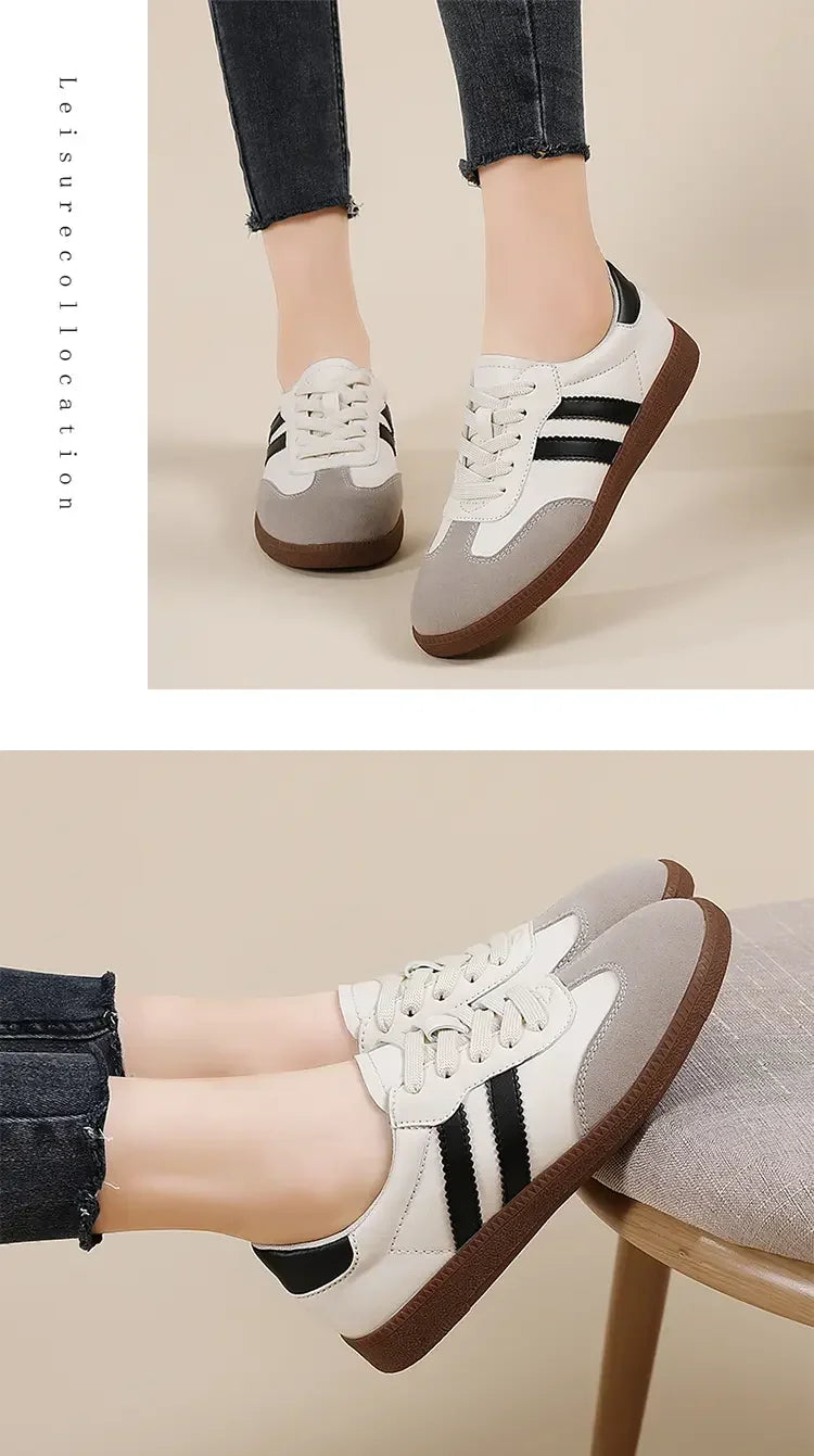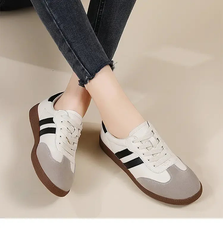 2024 Flat Luxury Shoes Women Autumn New Classic Ladies Sneakers Women Leather Retro Low Cut Lace -up Casual Round Toe Grey White