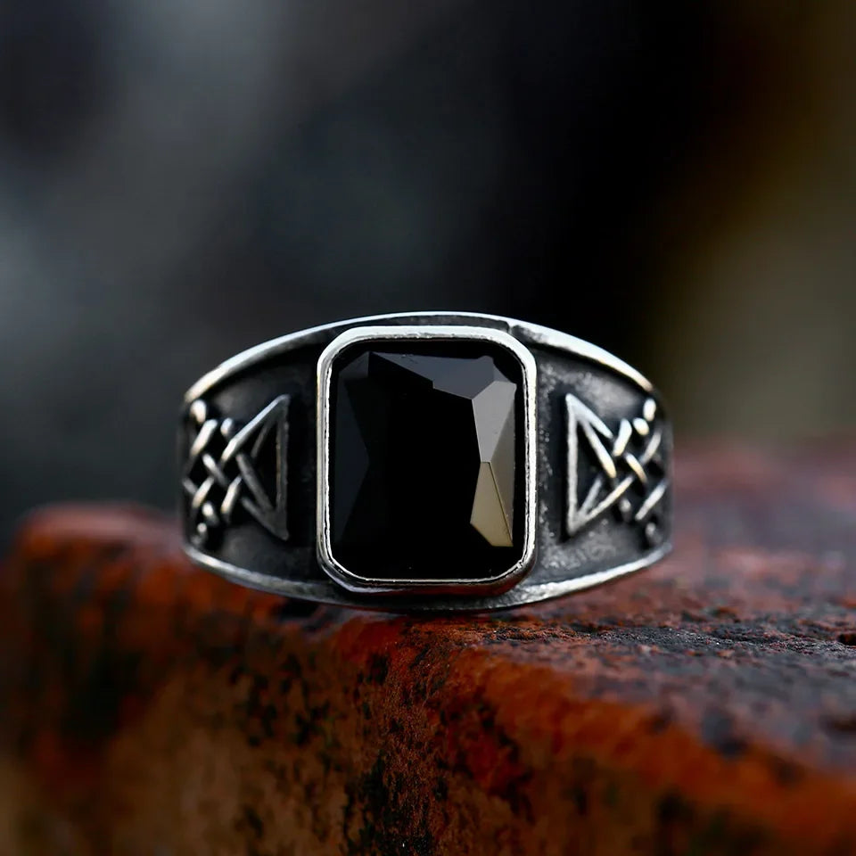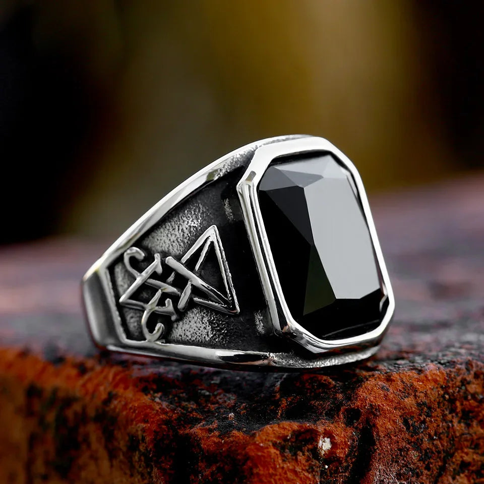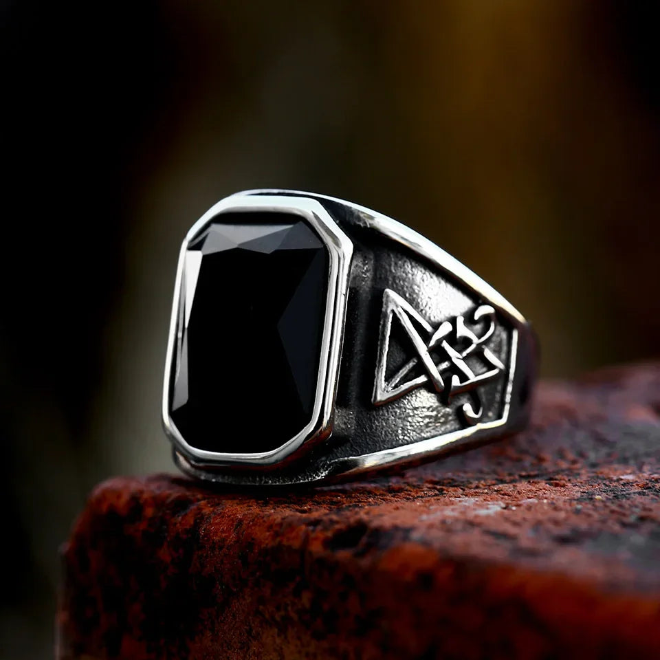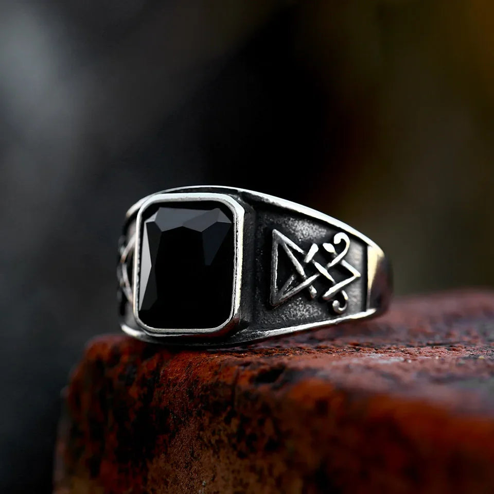 2024 New Updated Design Lucifer Satan Signet Ring For Men With Black Stone Stainless Steel Vintage Jewelry Gift Wholesale