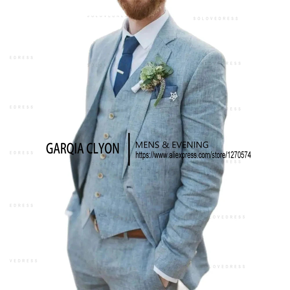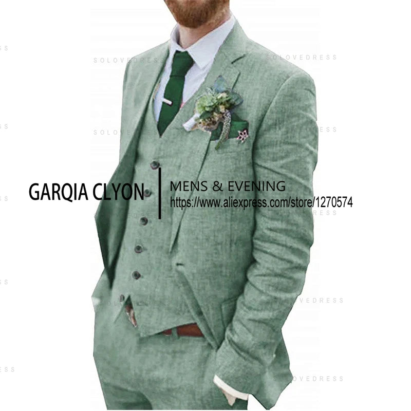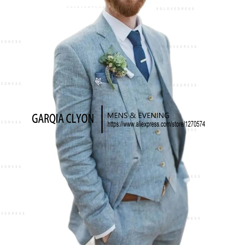 3 Piece Men's Retro Linen Men Suit Beach Wedding Suit Summer Slim Fit Linen Suit Groomsmen For Wedding(Blazer+Vest+Pants)
