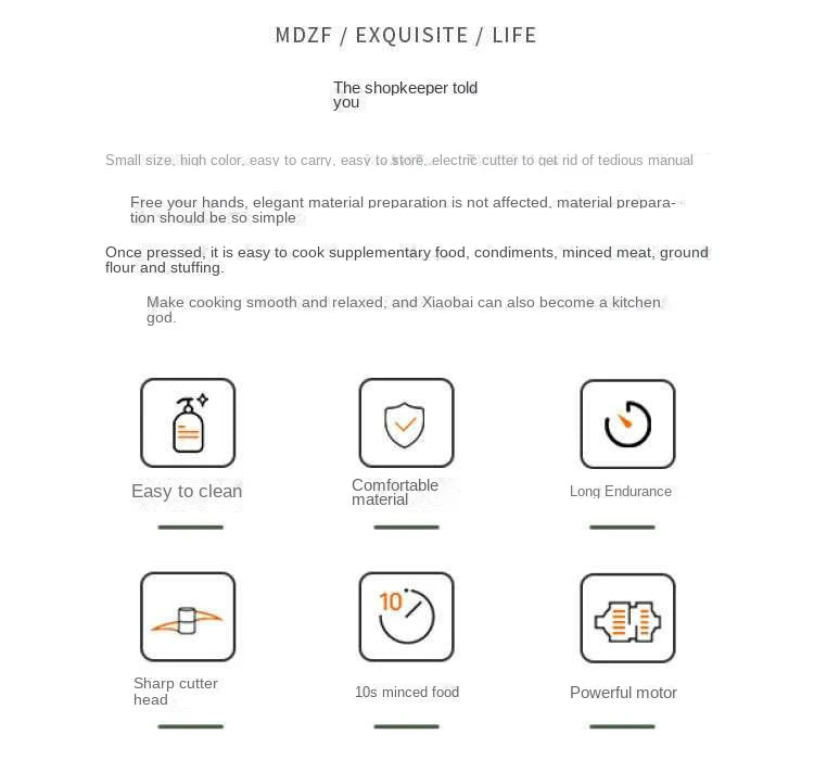 【Chop Food Safely】Electric mini chopper comfortable to hold, breaking the dangling click mode of the traditional veggie chopper, the ergonomic design does not tire your hands, the vegetable chopper protects your fingers from the blades when slicing and you no longer need any slicer skills to cut your vegetables.
