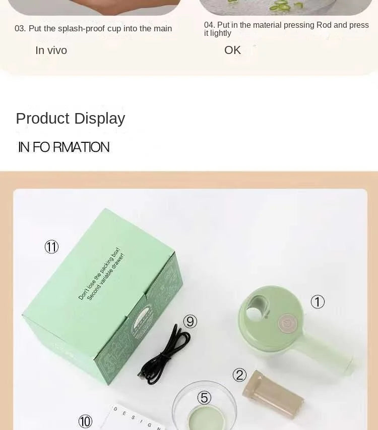 4 in 1 Handheld Electric Vegetable Cutter Set for Garlic Pepper Chili Onion Celery Ginger Meat with Brush Kitchen Tools