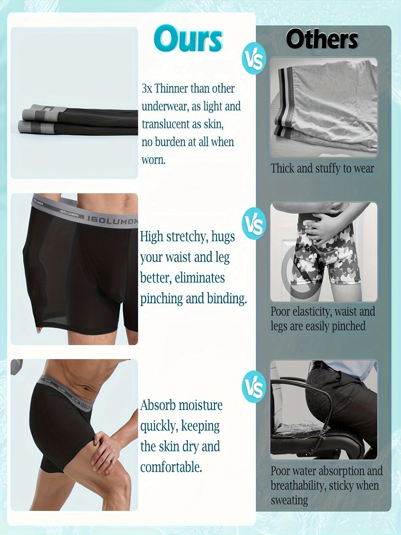 6 Pack Soft Bamboo Rayon IGOLUMON Mens Underwear, Breathable Boxer Briefs For Men Trunks With Fly
