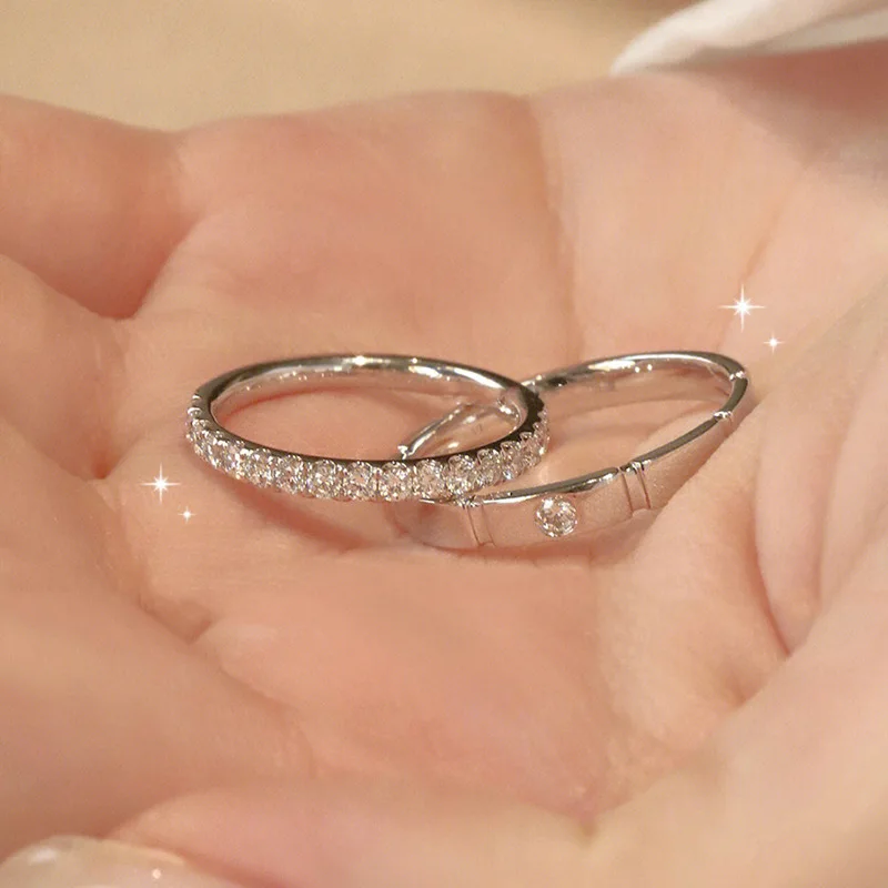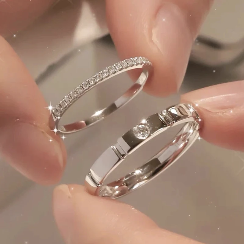 925 Sterling Silver Bow Couple Open Ring Wedding Proposal Ring Flash Diamond Men and Women Pair Ring New Fashion Jewelry Gift