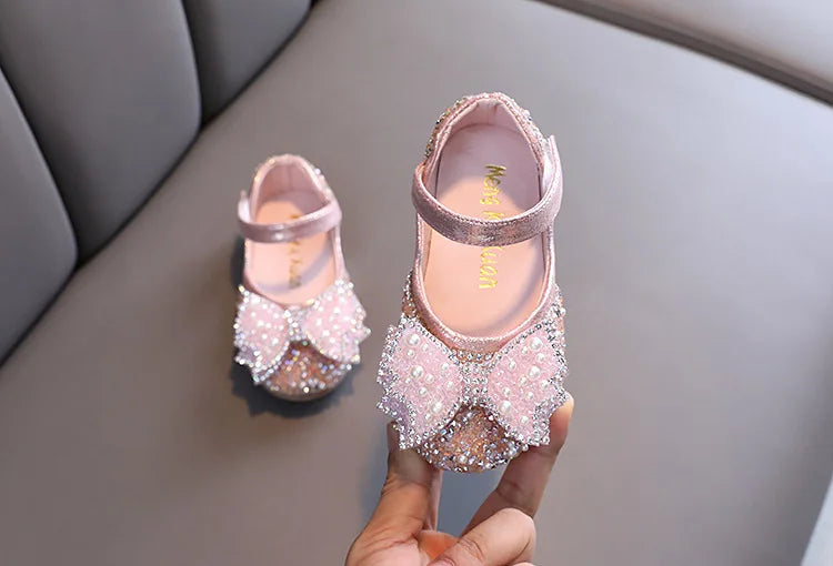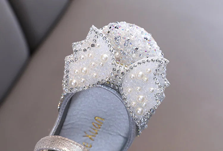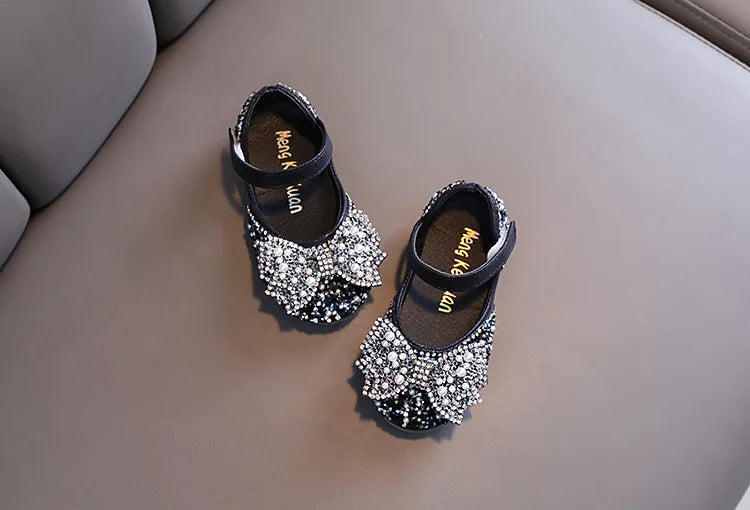 Autumn Girls Leather Shoes Princess Square Rhinestone Bow Single Shoes Fashion Children Performance Wedding Shoes G14