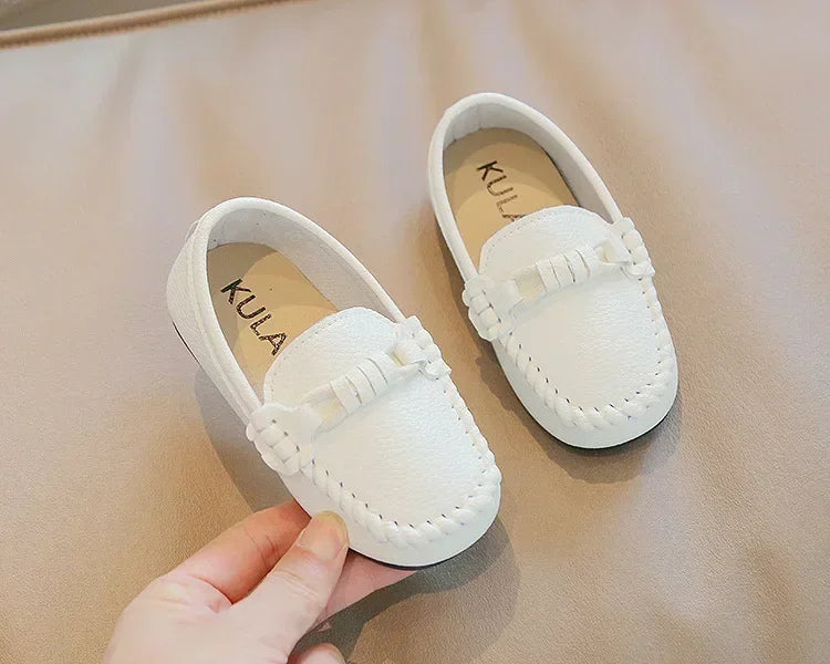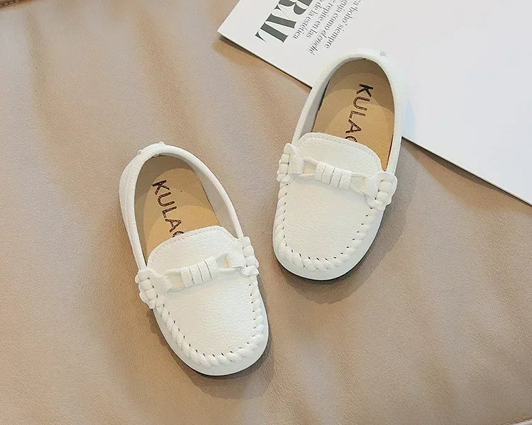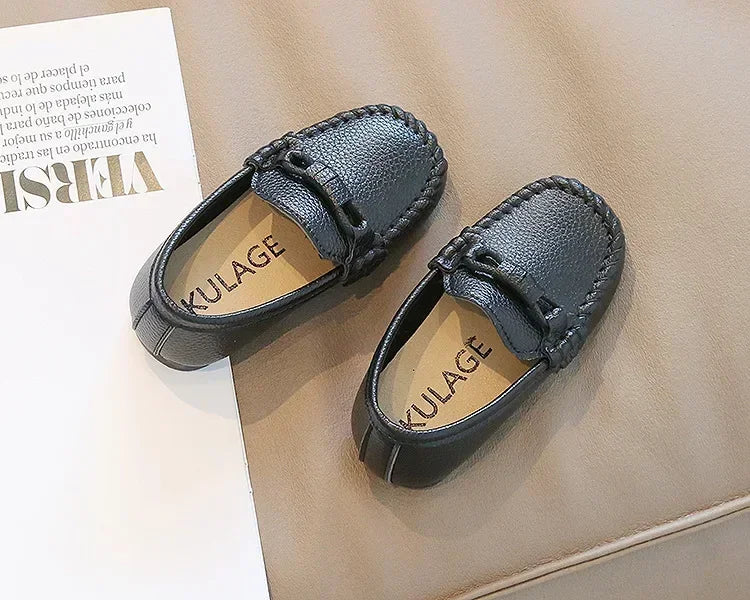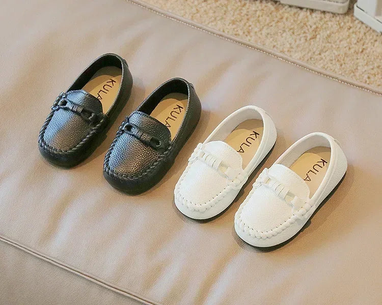 Boys Leather Shoes Black White for School Party Wedding Kids Formal Flats Loafers Slip-on Soft Loafers Children Moccasins 21-30