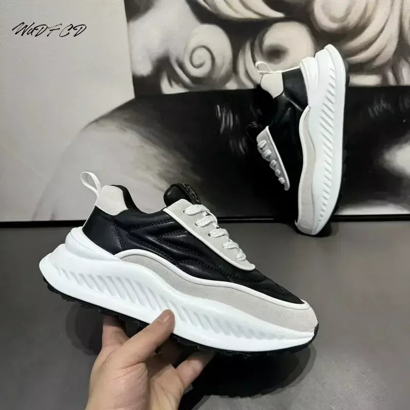Chunky Sneakers Mens Designer Running Shoes Fashion Casual Microfiber Leather Upper Height Increased Flat Platform Sport Shoes