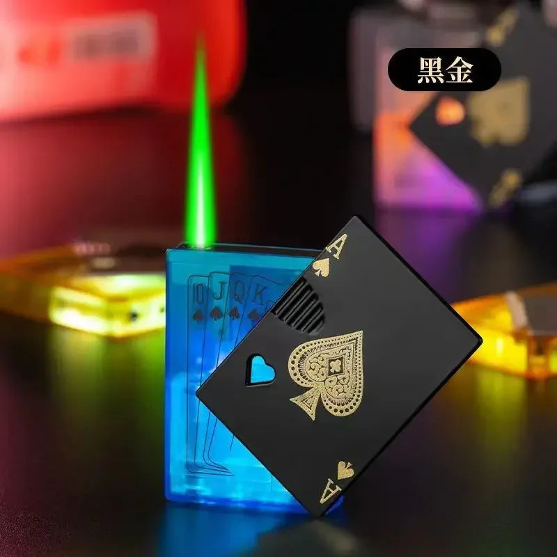 Creative Poker Ace of Spades Lighter Butane Windproof Straight Metal Lighter Men's Fun Toy Cigarette Lighter