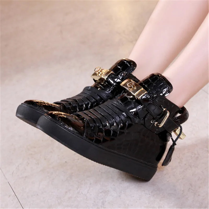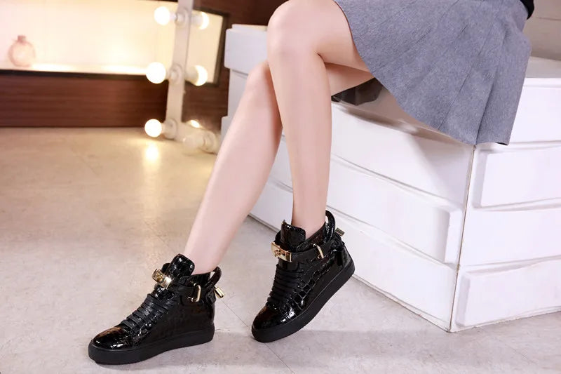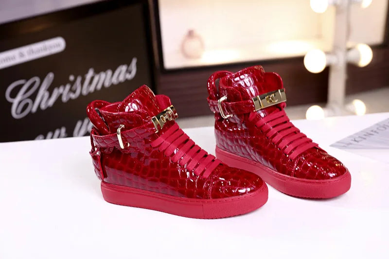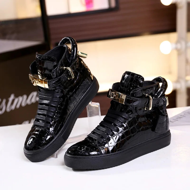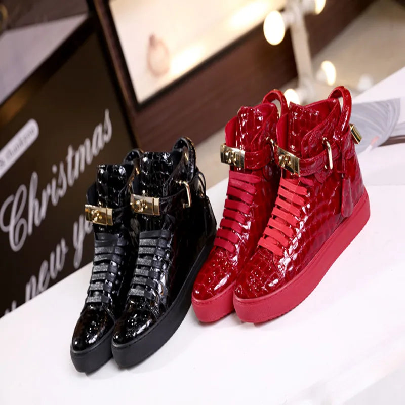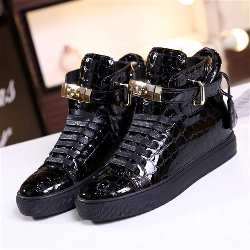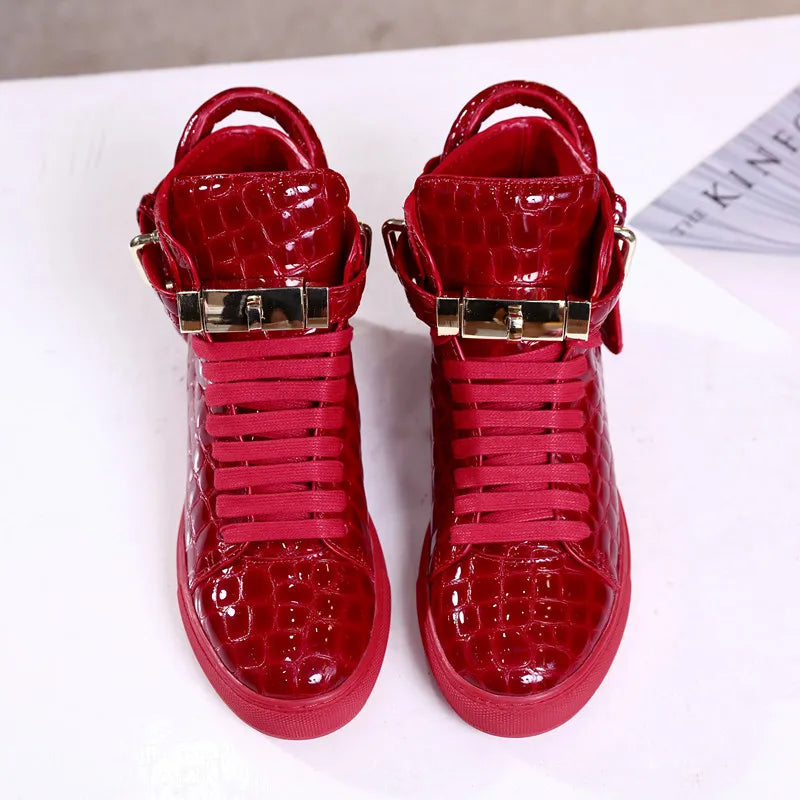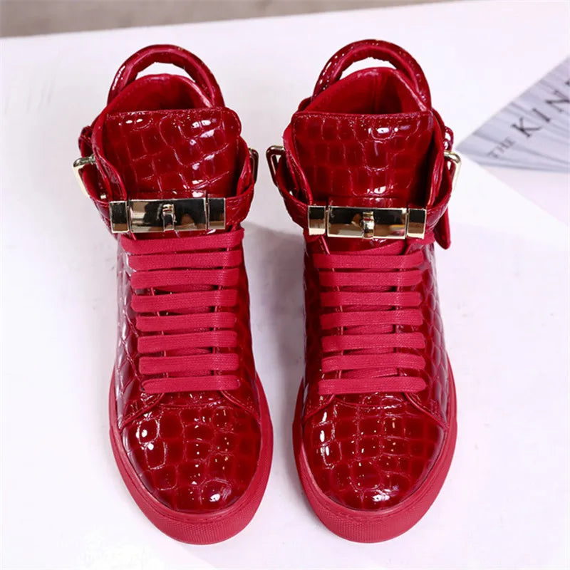 Unisex High-Top Leather Sneakers - Casual Running Shoes with Metal Details