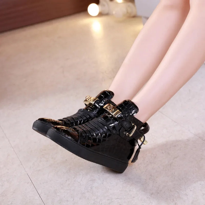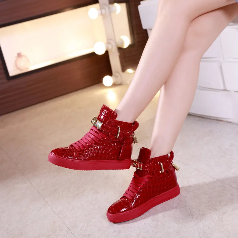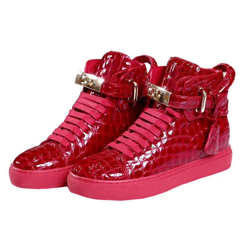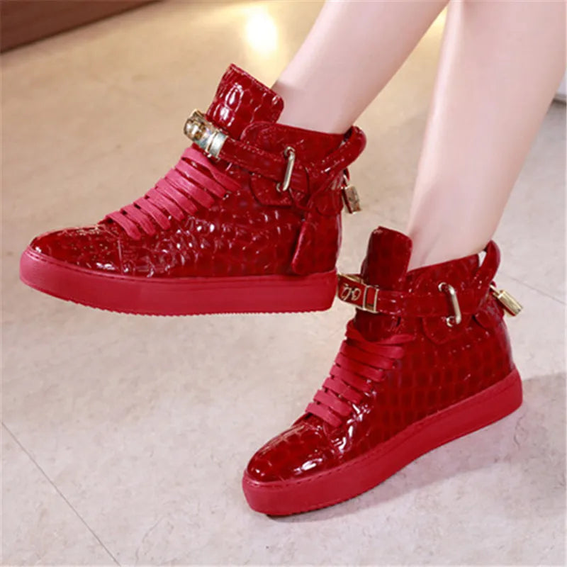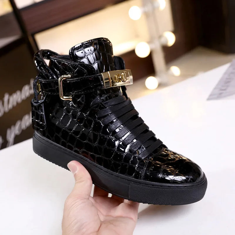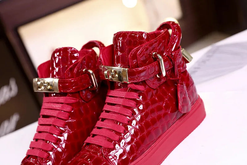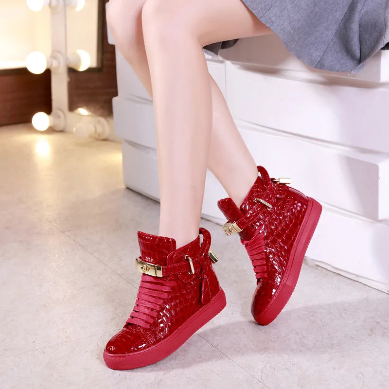 Unisex High-Top Leather Sneakers - Casual Running Shoes with Metal Details