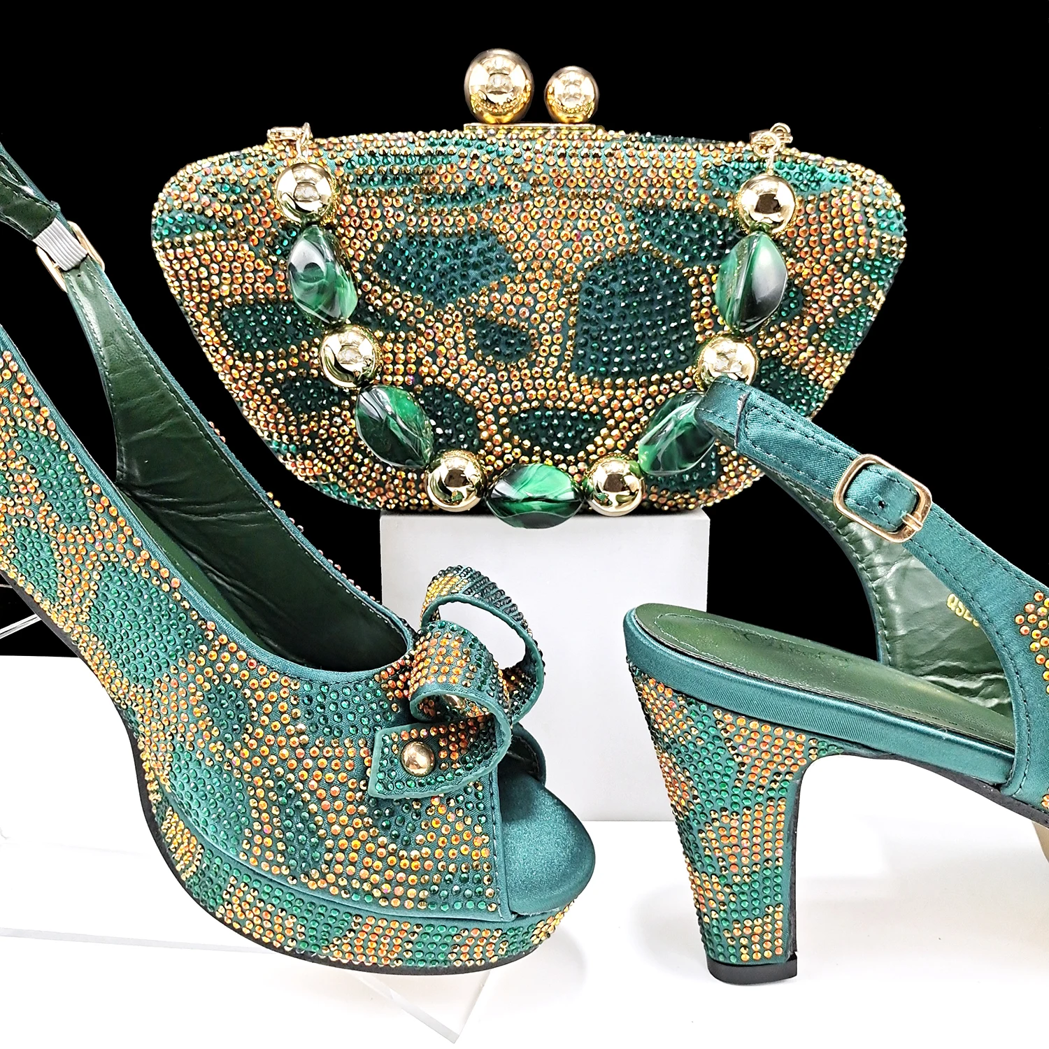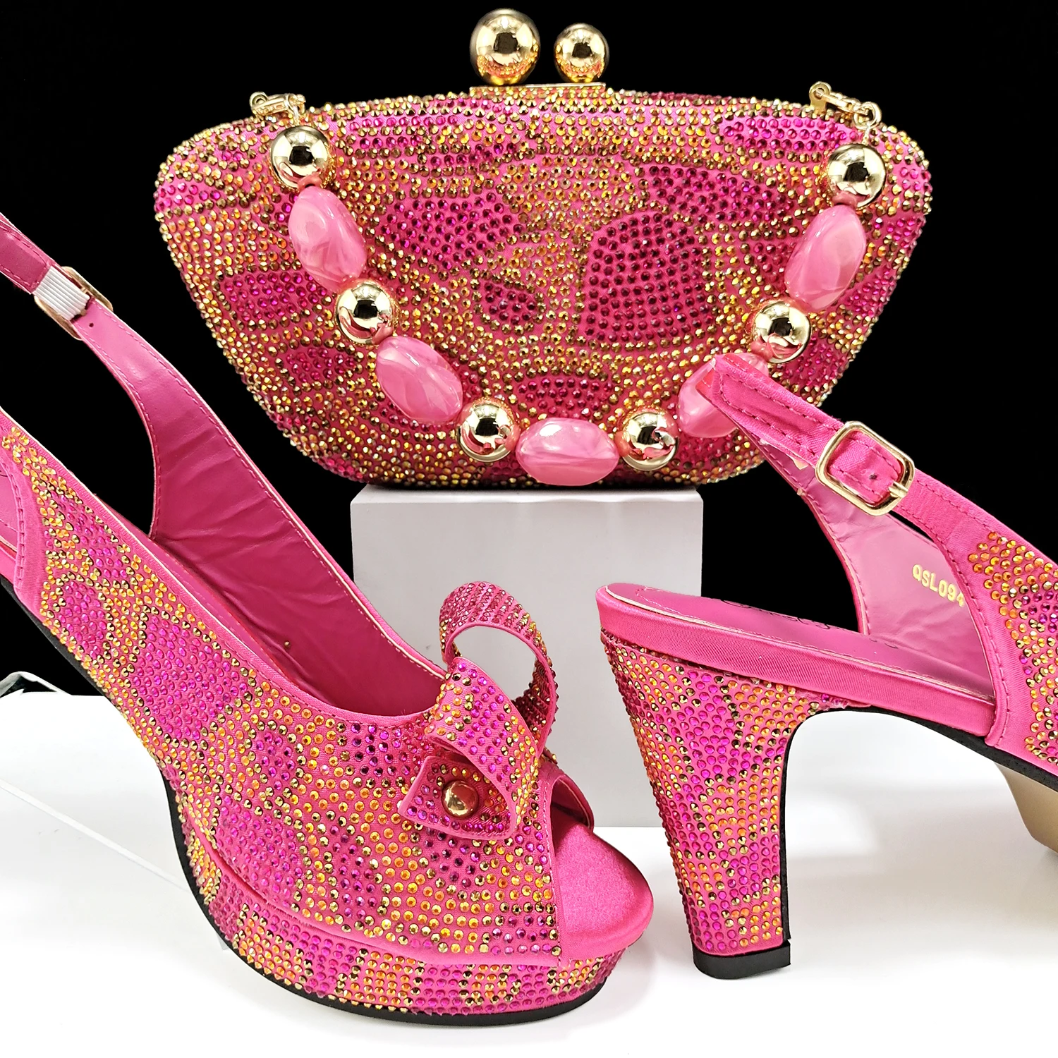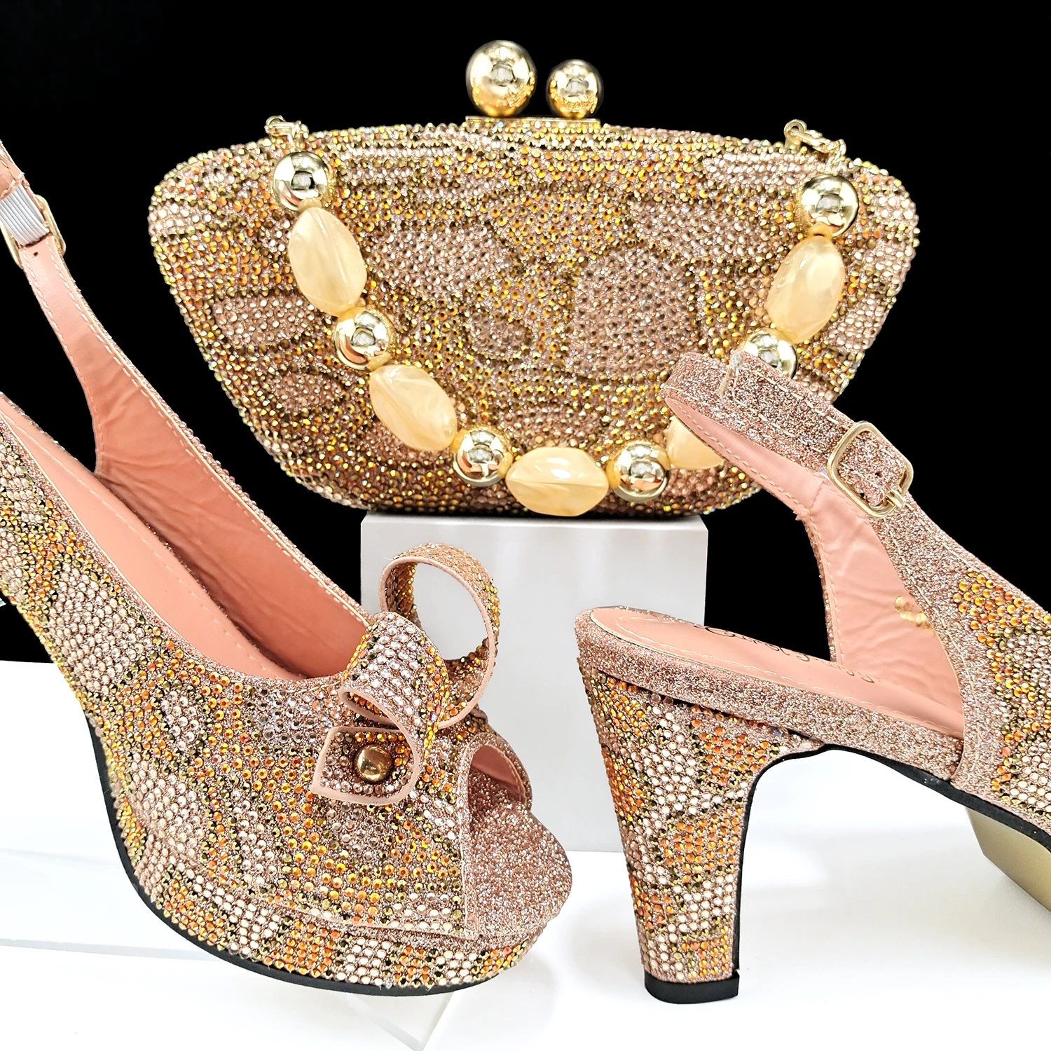 Fashion Design African Style Banquet Shoes And Bag Sexy High Heels And Full Diamond Dual Purpose Mini Bag Ladies Shoes
