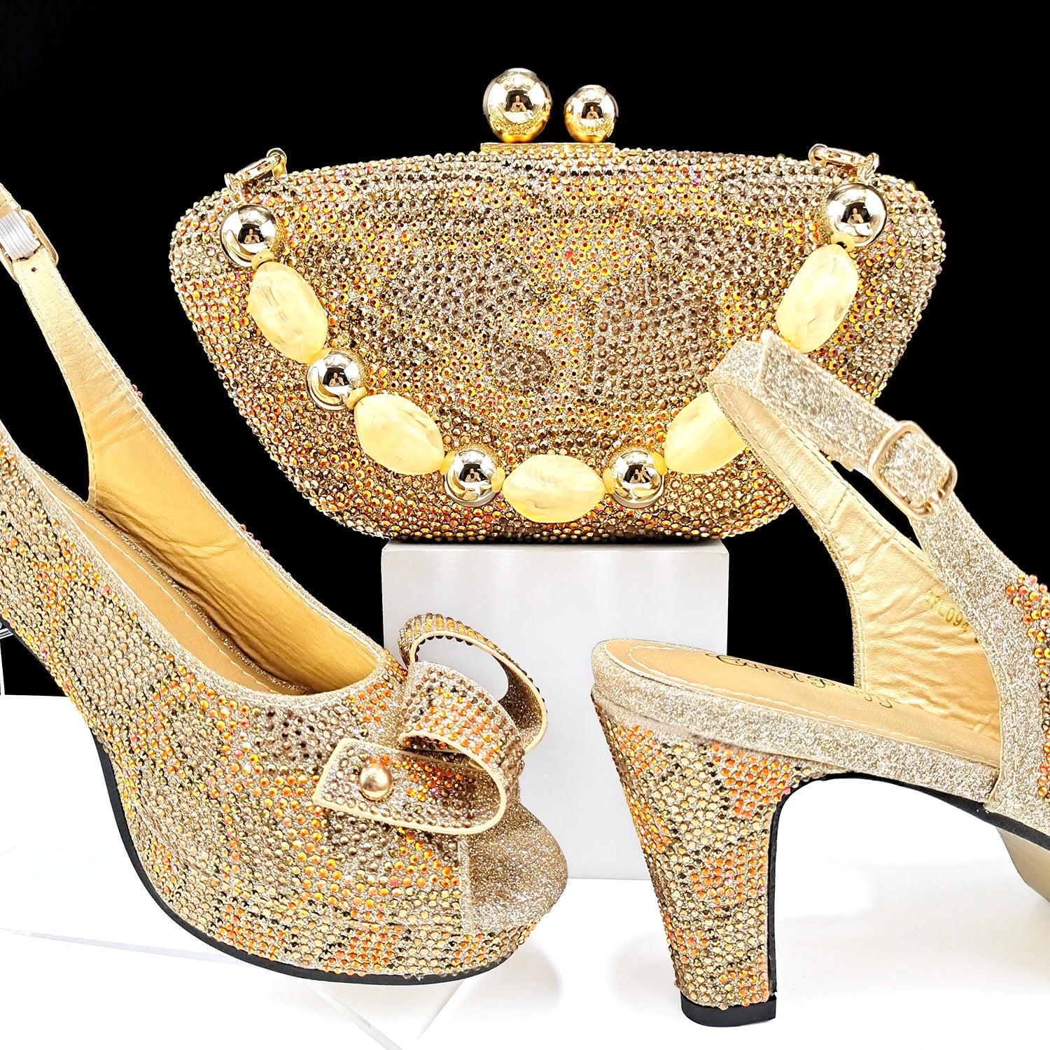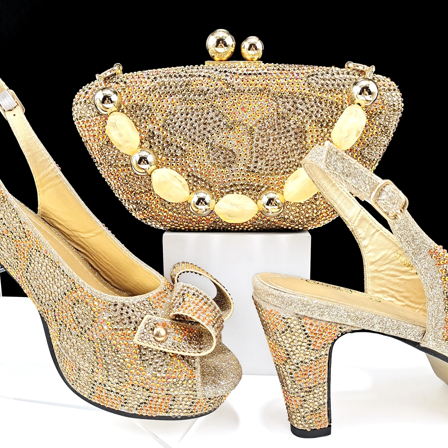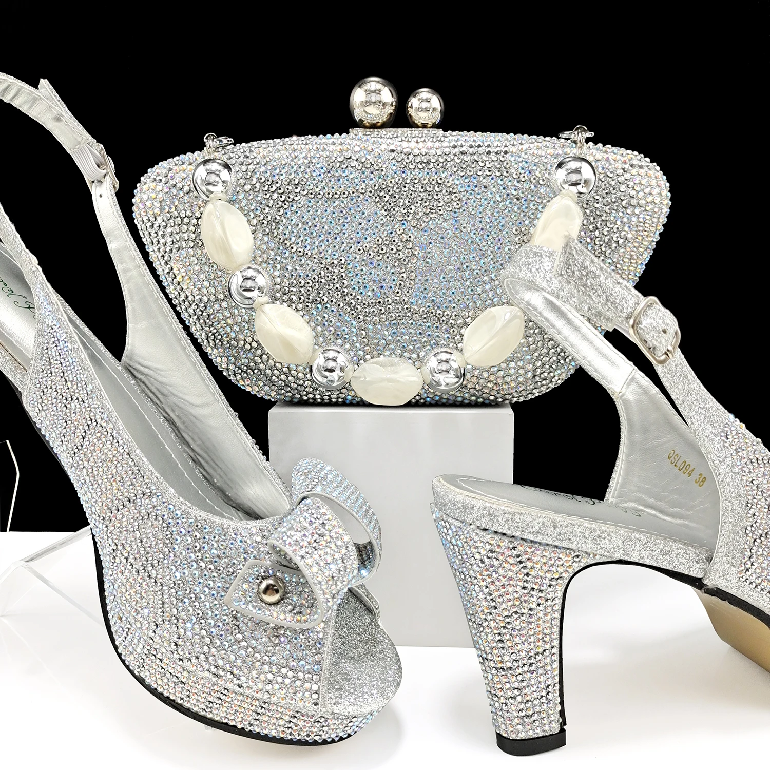 Fashion Design African Style Banquet Shoes And Bag Sexy High Heels And Full Diamond Dual Purpose Mini Bag Ladies Shoes