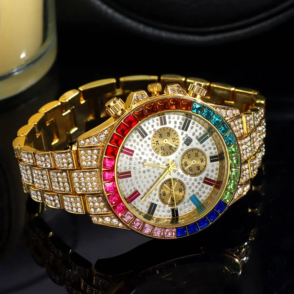 Fashion Hiphop Women Quartz Watch Luxury Cuban Bracelet Chain Sets Rhinestones Dress Wristwatch For Ladies Gift