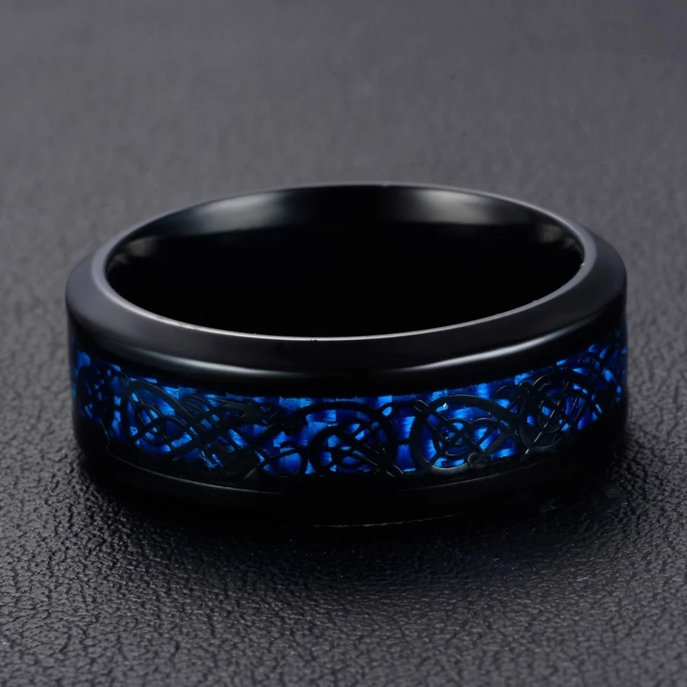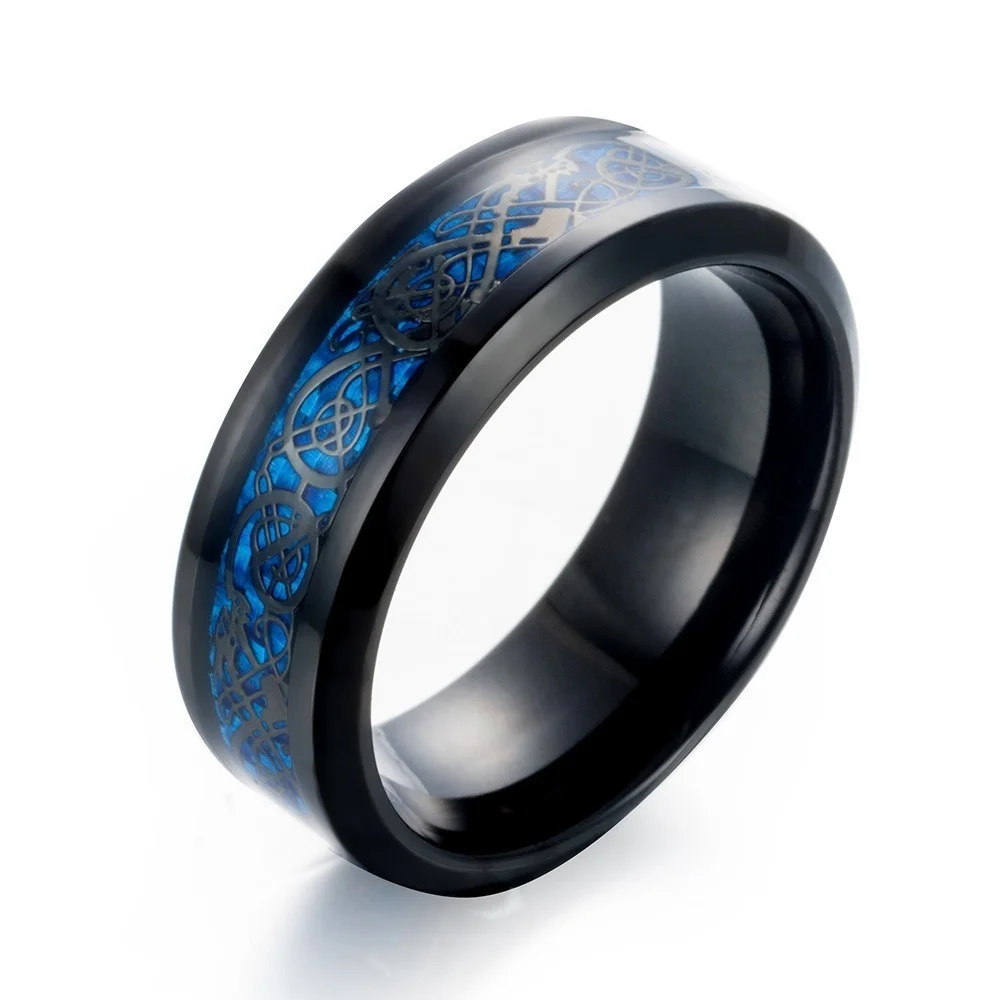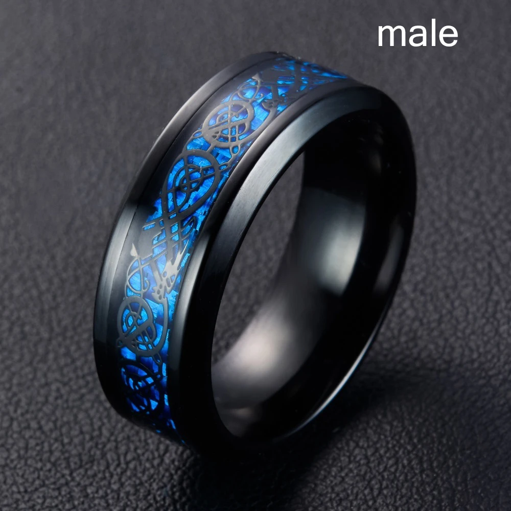 Fashion Jewelry Couple Rings for Lover's Vintage Dragon Pattern Stainless Steel Male Rings 6MM Dark Blue Zircon Female Ring Gift