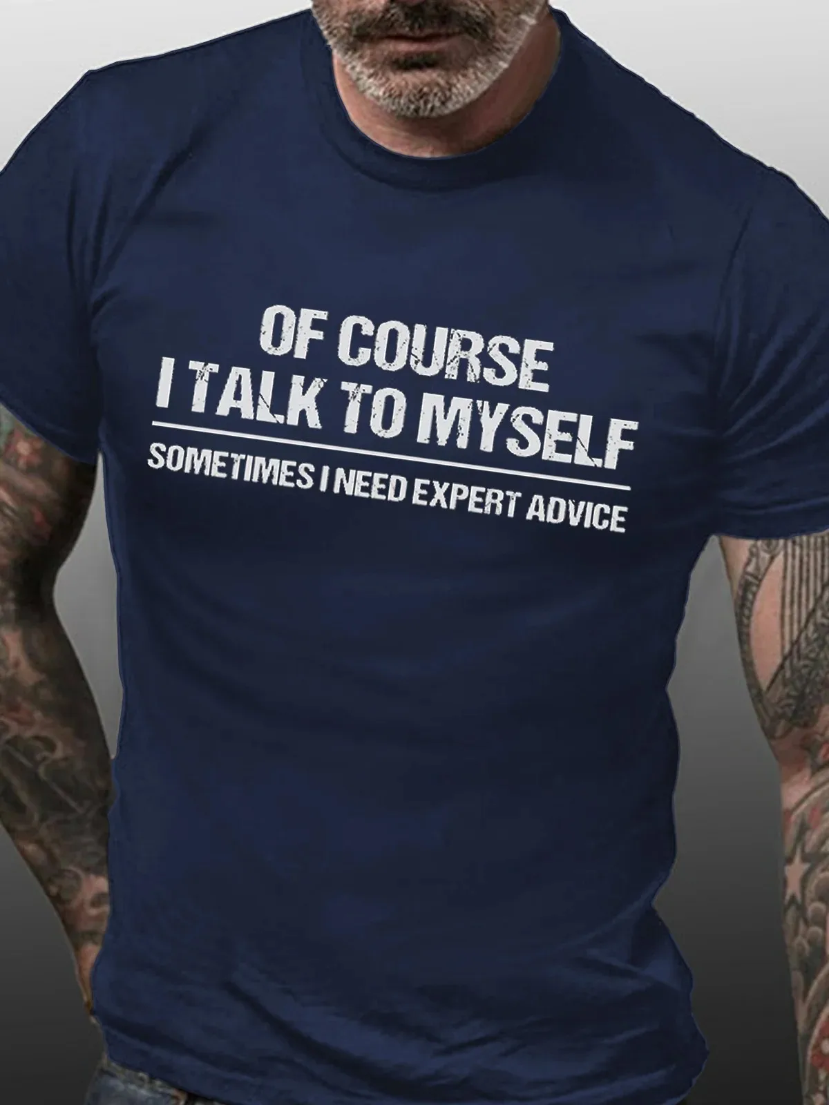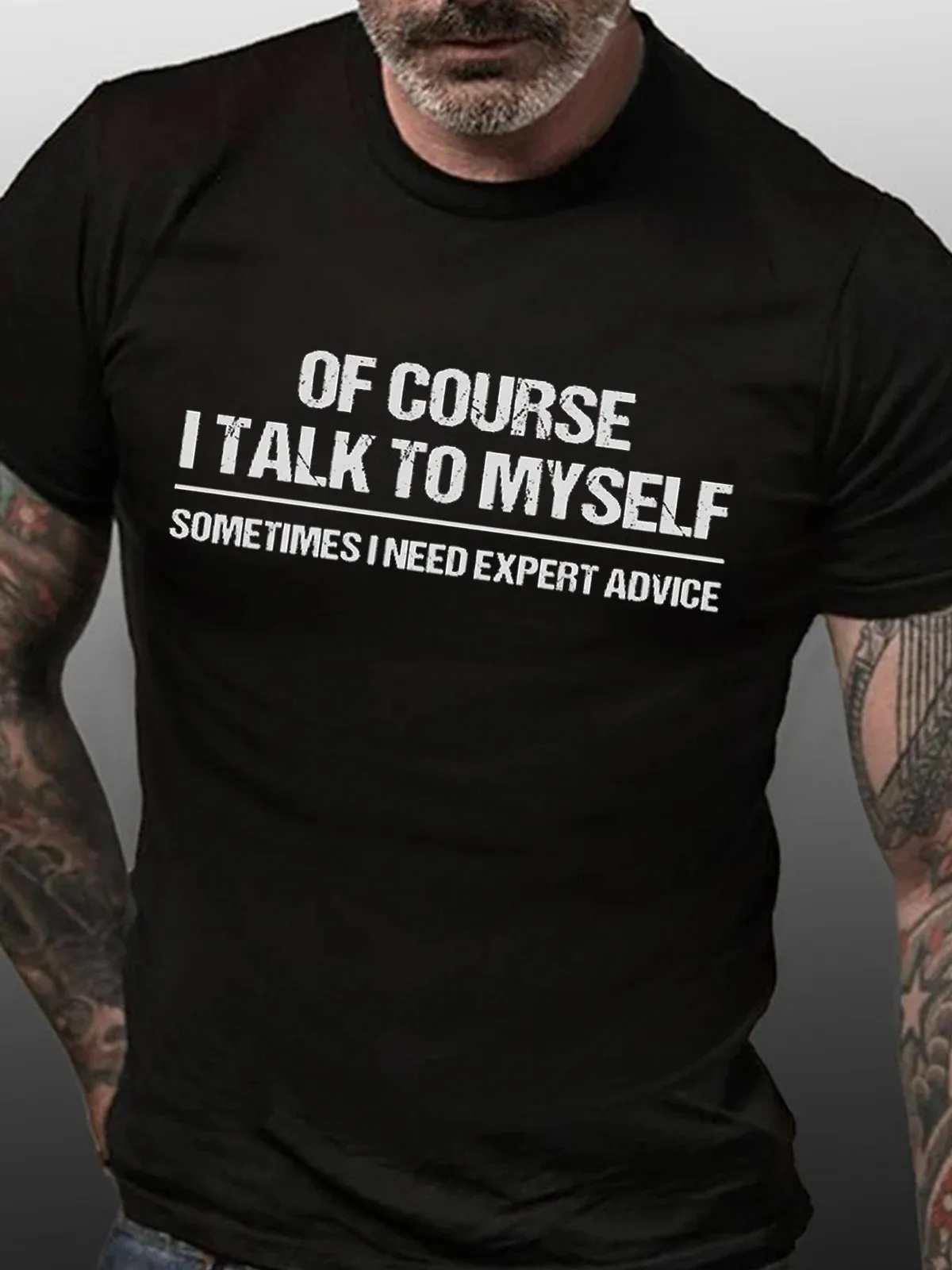 Funny Of Course I Talk To Myself, Sometimes I Need Expert Advice Casual Short Sleeve Cotton Short Sleeve T-Shirt