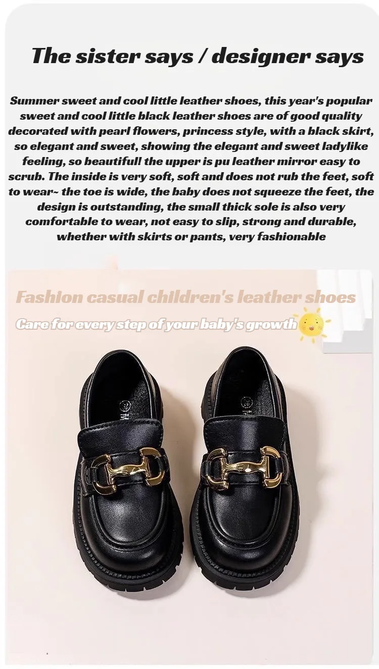 Girls' leather shoes princess shoes spring and autumn loafers non-slip soft-soled fashionable shoes