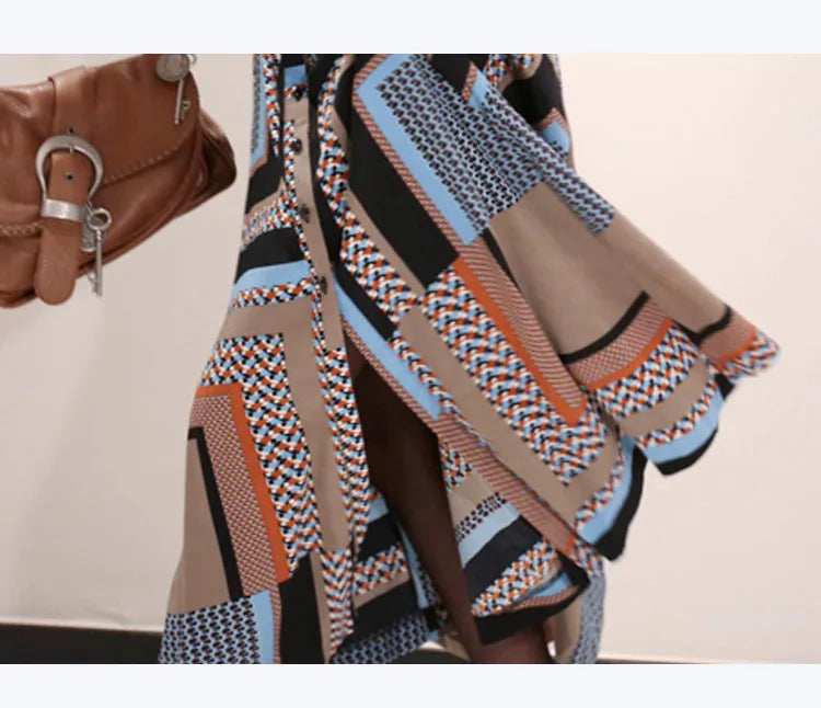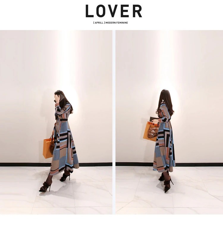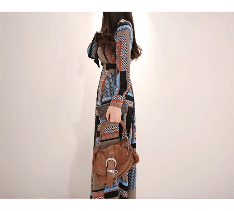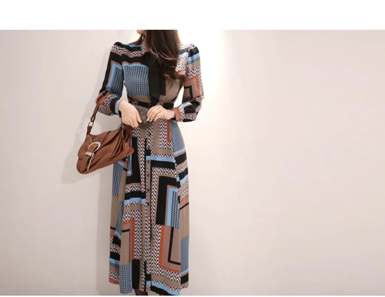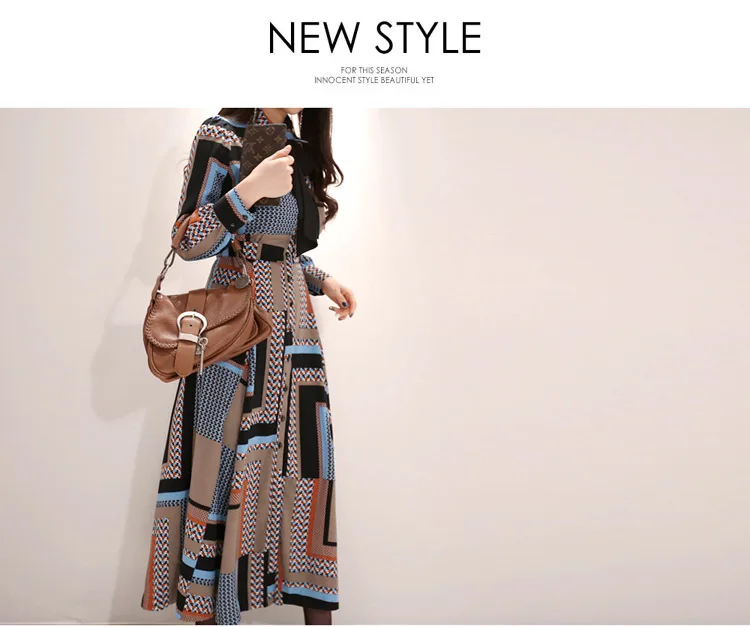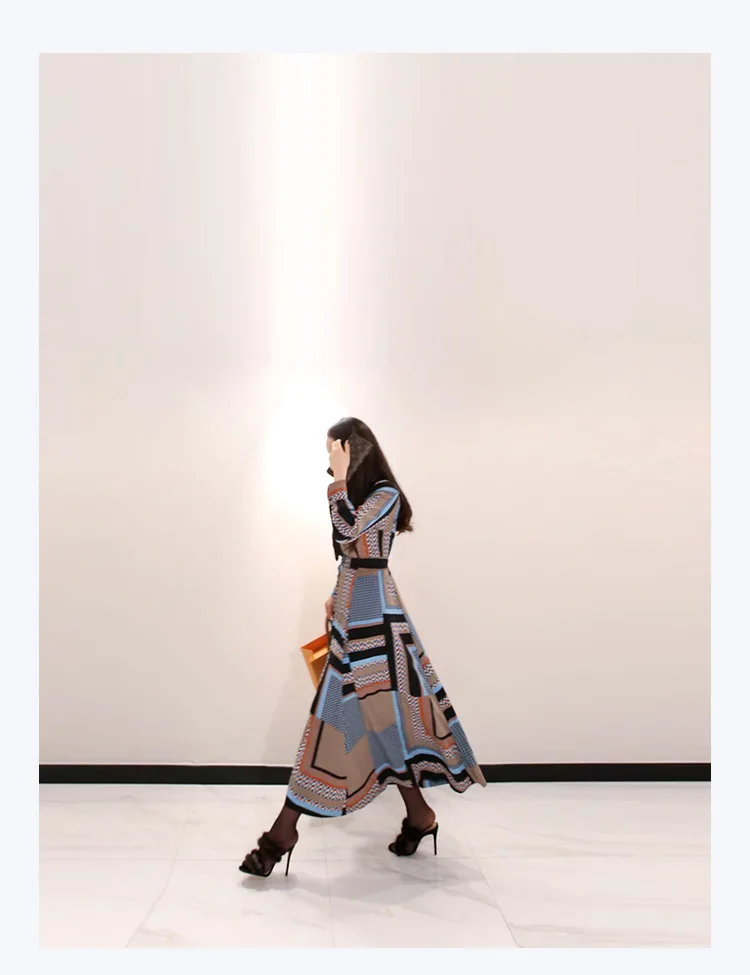 H Han Queen Vintage Print Elegant Long Dress Women Spring Single-breasted Shirt Dresses Waist Swing Ankle-length Vestidos