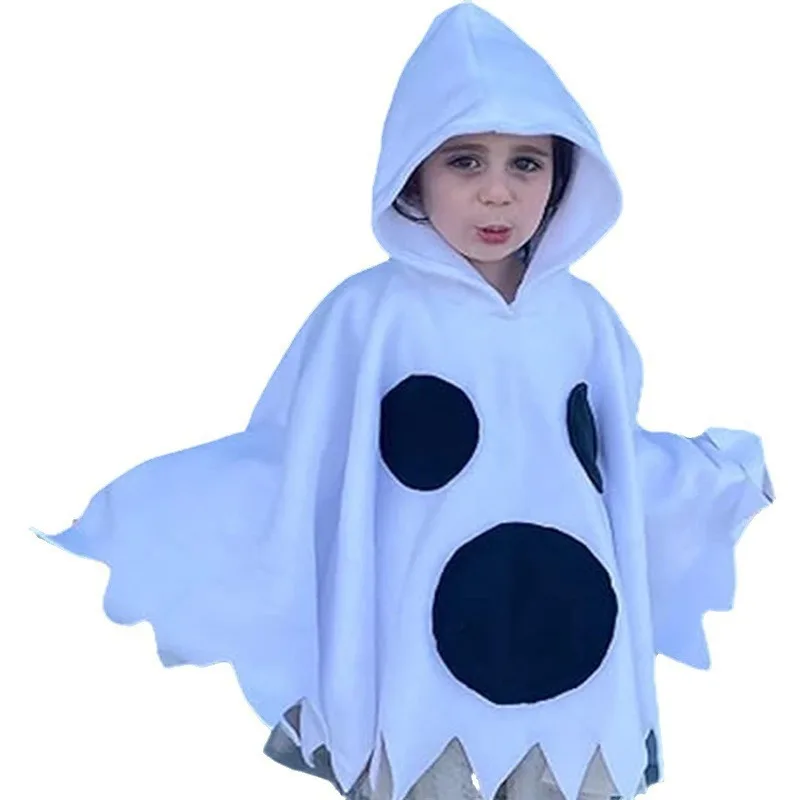 Halloween Carnival Kids Costume - Hooded Color Block Printed Cosplay Funny Children's Cloak Cape