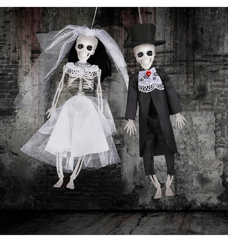 Haunted House Halloween Decoration Skeleton Bride and Groom Hanging Decoration Bride and Groom Ghost Couple Secret Room Props