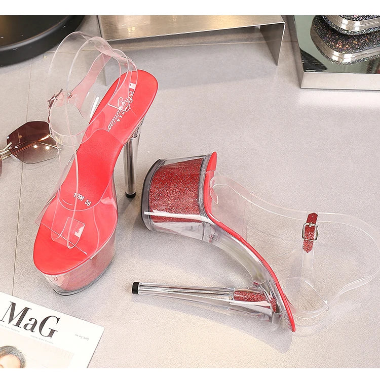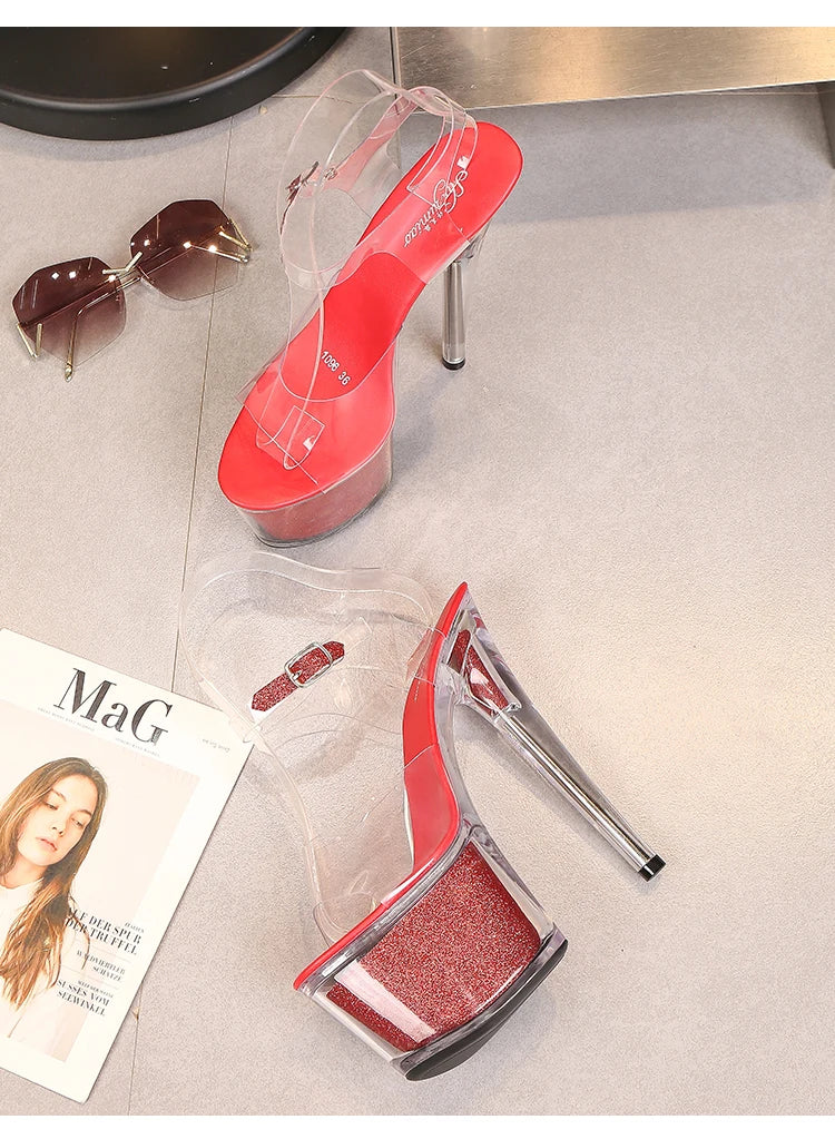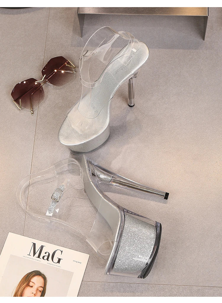 High Heel 17cm Model Show Night Club Fun Women Sandals Pole Dancing Shoes Sequined Platform Practice Performance Dancing Shoes