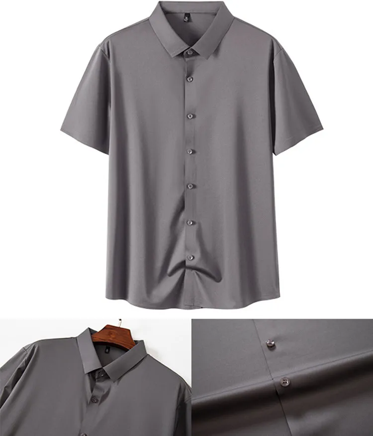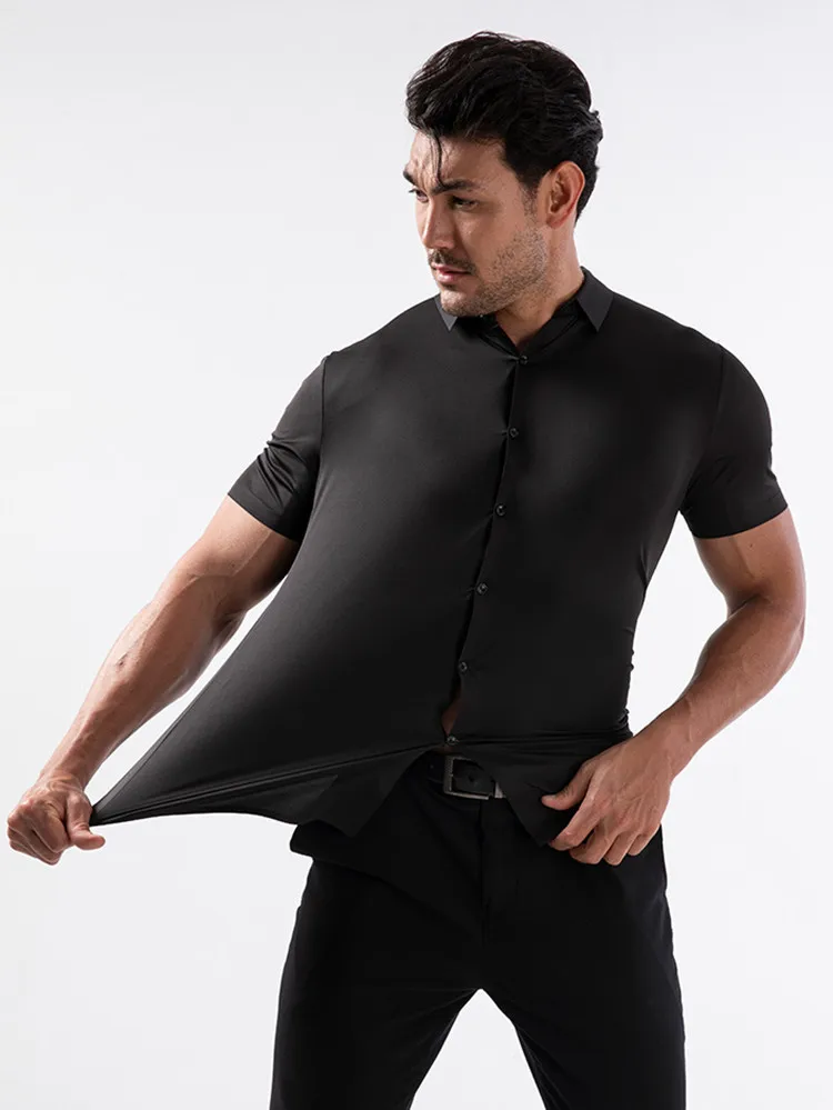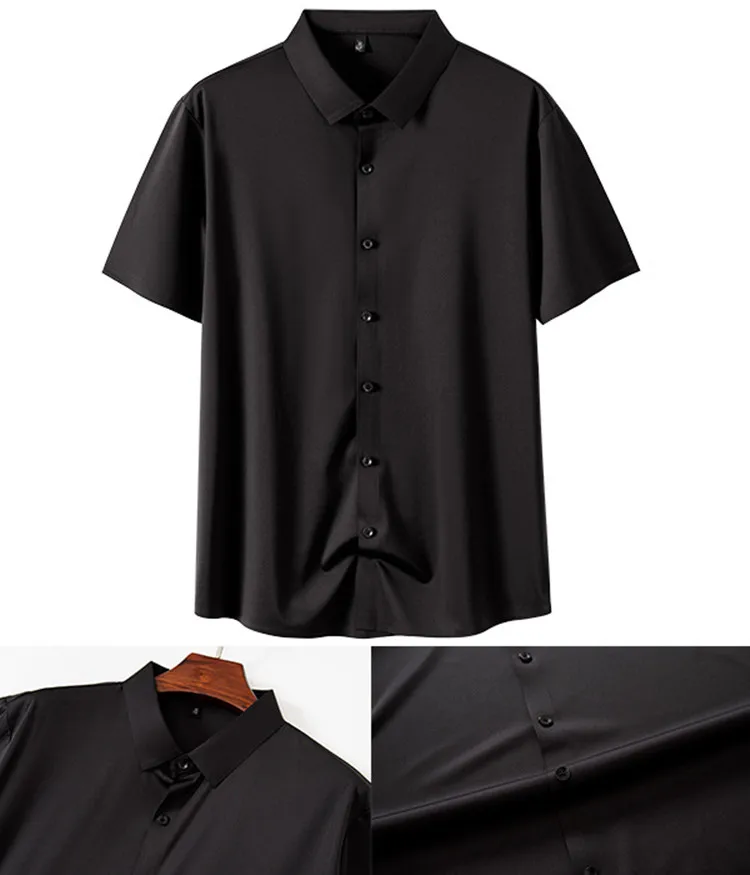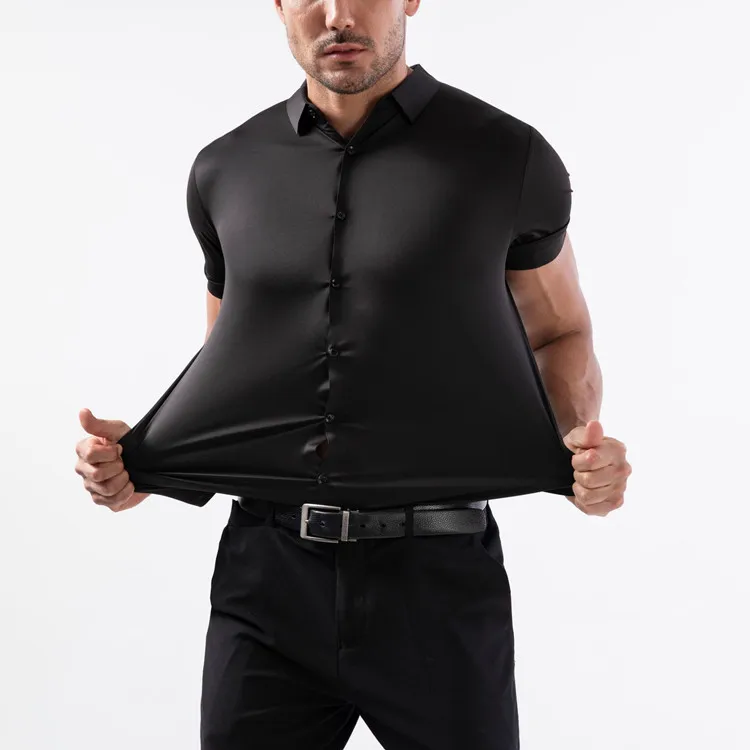 High Quality Summer Business Shirts For Men Short Sleeve Button Wrinkle Free Elasticity Social Black Office Dress Shirts US Size