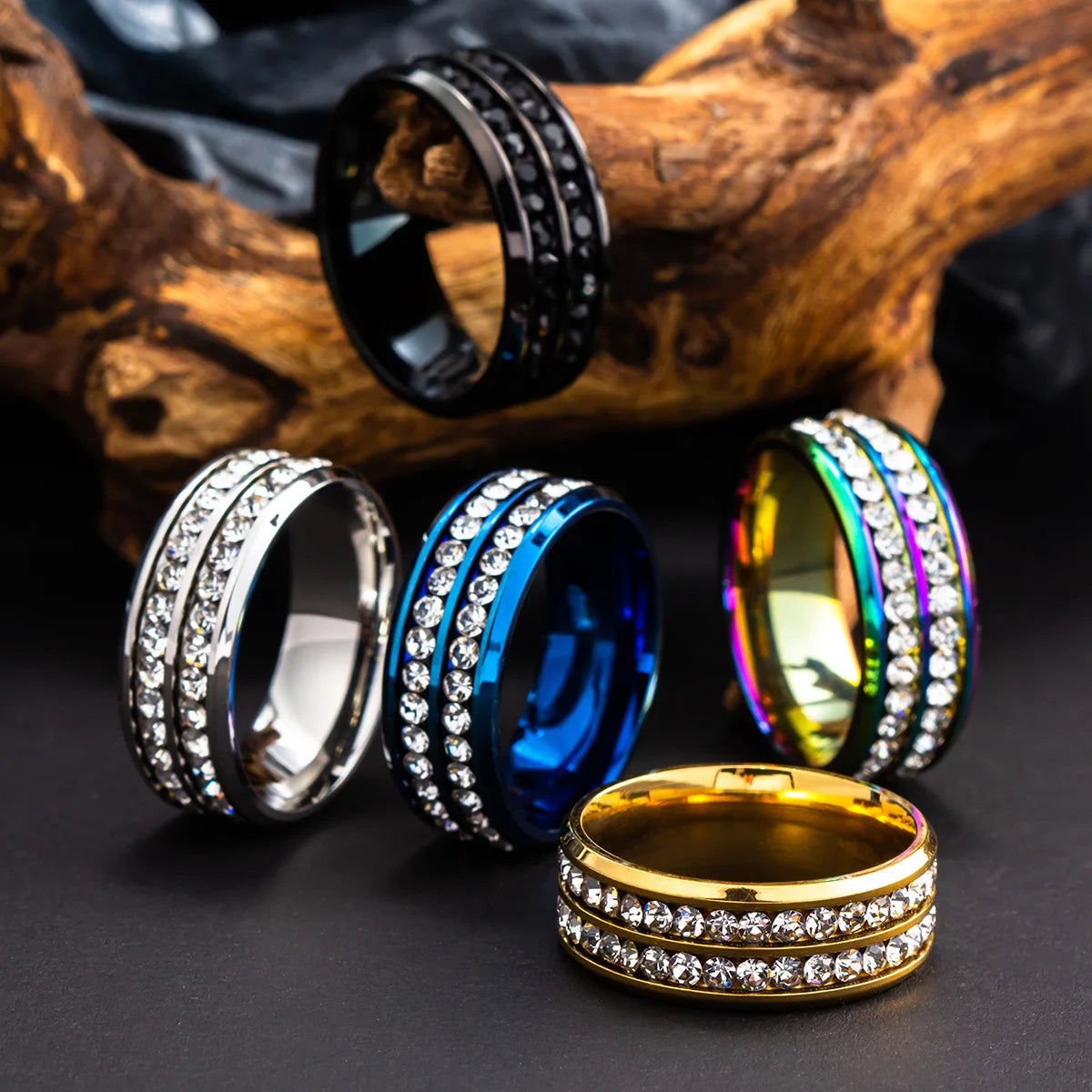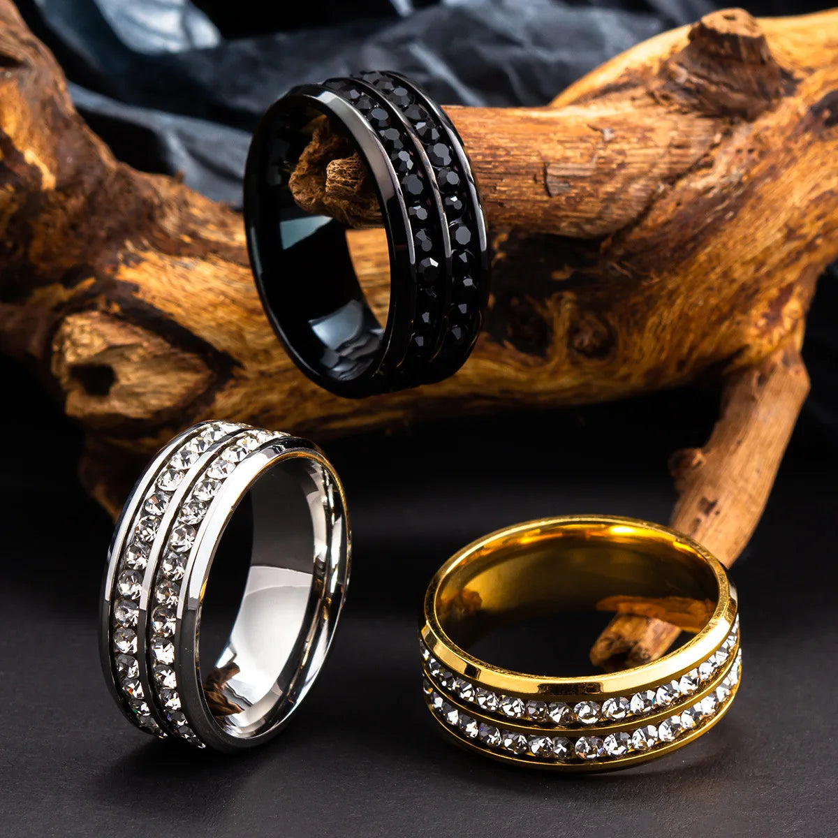 Hot Selling Stainless Steel Couple New Fashion Double Row Drilling Ring For Women Men Jewelry Valentine's Day Gifts Size 5-13
