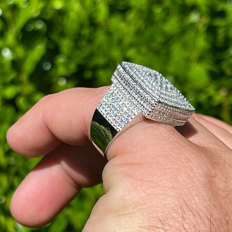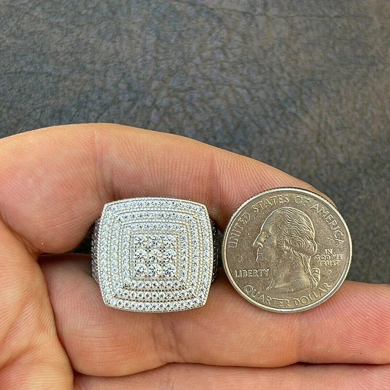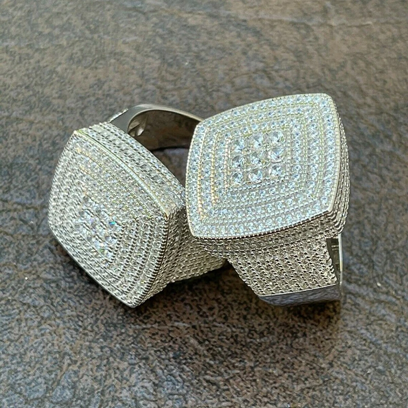 Huitan Gorgeous Square Shaped Wedding Rings for Lover Men/Women New Luxury Silver Color Bling CZ Couple Rings Fashion Jewelry