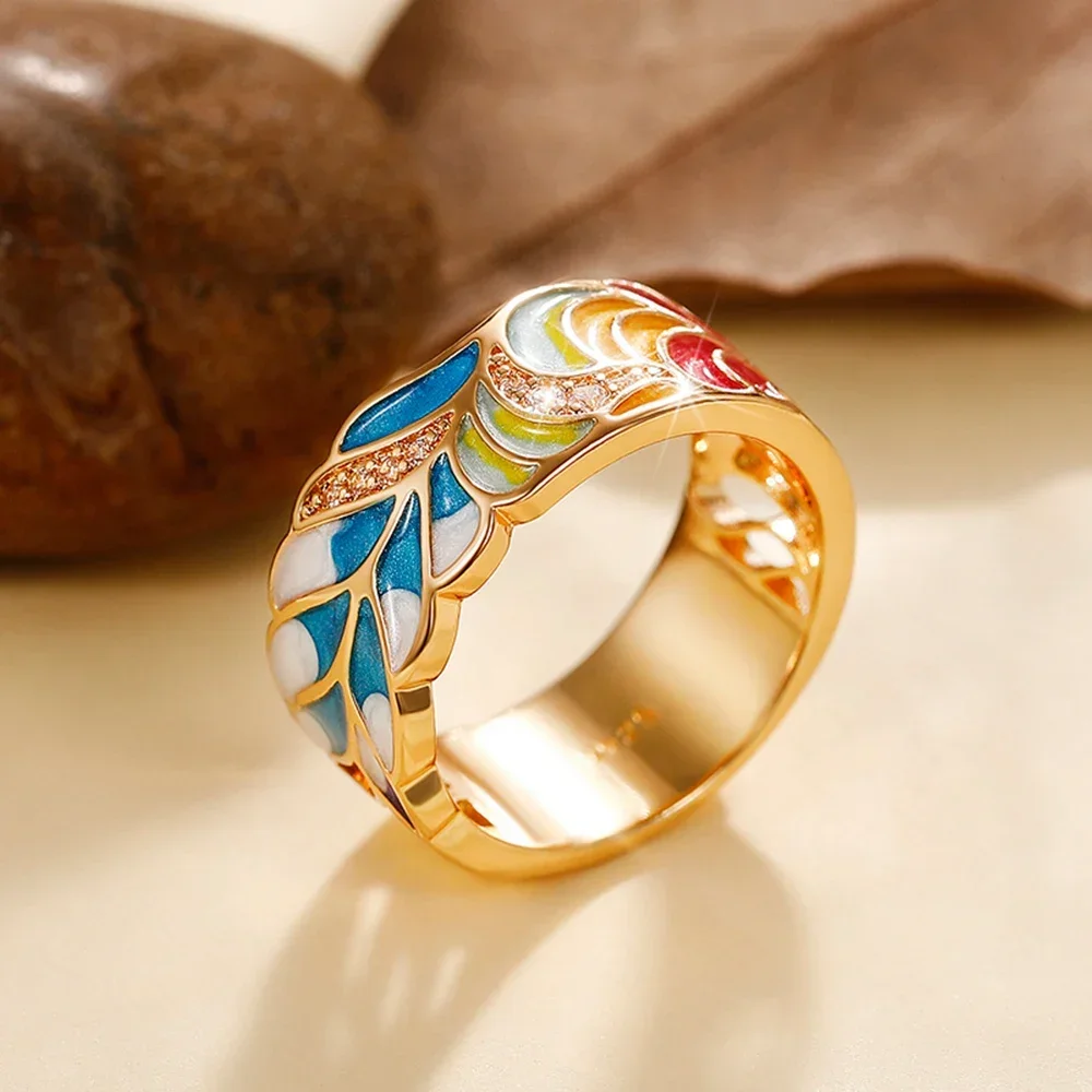 Huitan Newly Designed Colored Enamel Women Rings for Party Aesthetic Pattern Luxury Gold Color Fancy Gift Fashion Jewelry