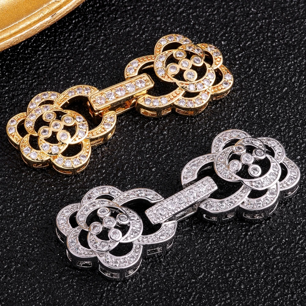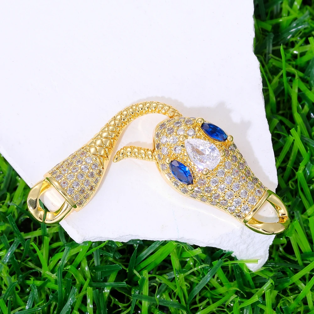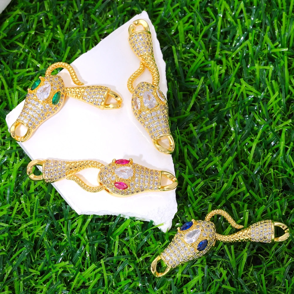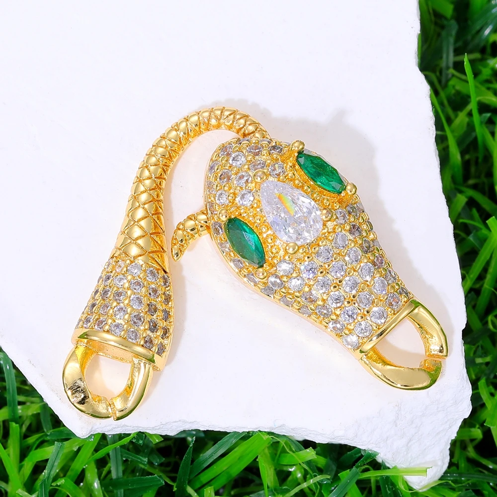Juya Handmade Cubic Zirconia 18K Real Gold Plated Fastener Snake Hooks Clasps Accessories For Luxury Beads Chains Jewelry Making