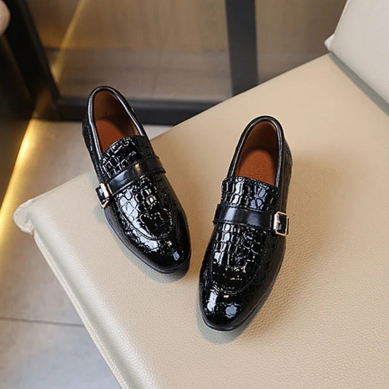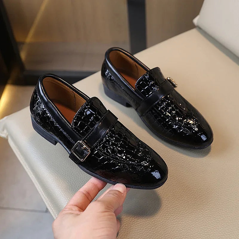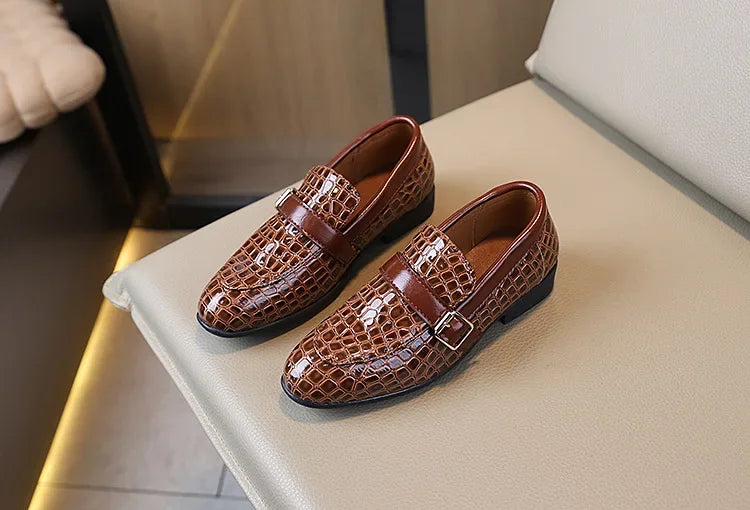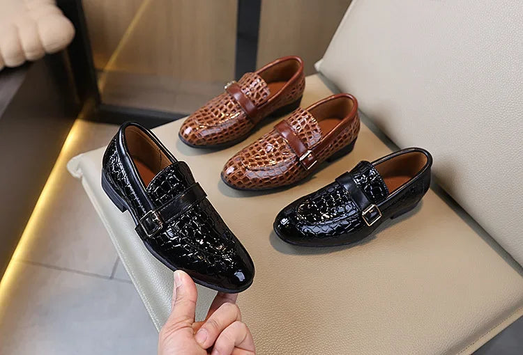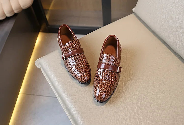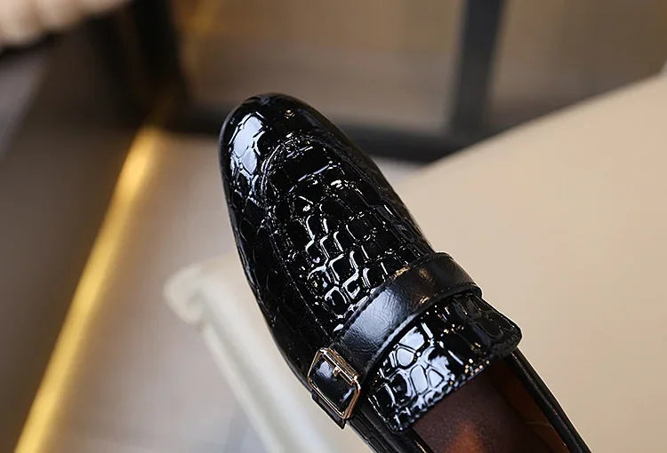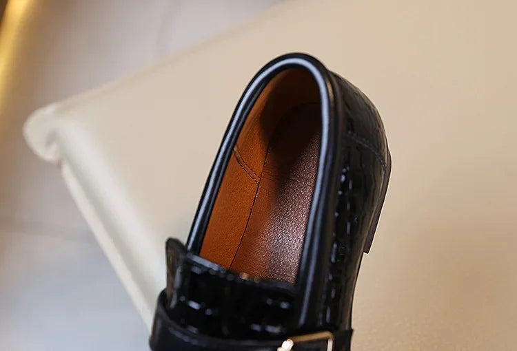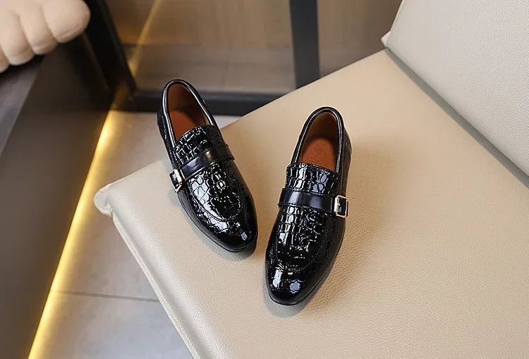 Kids Leather Shoe for Catwalk Fashion Boys Black Flats Pointed-toe Versatile School Uniform Children Performance Low-heels Shoes