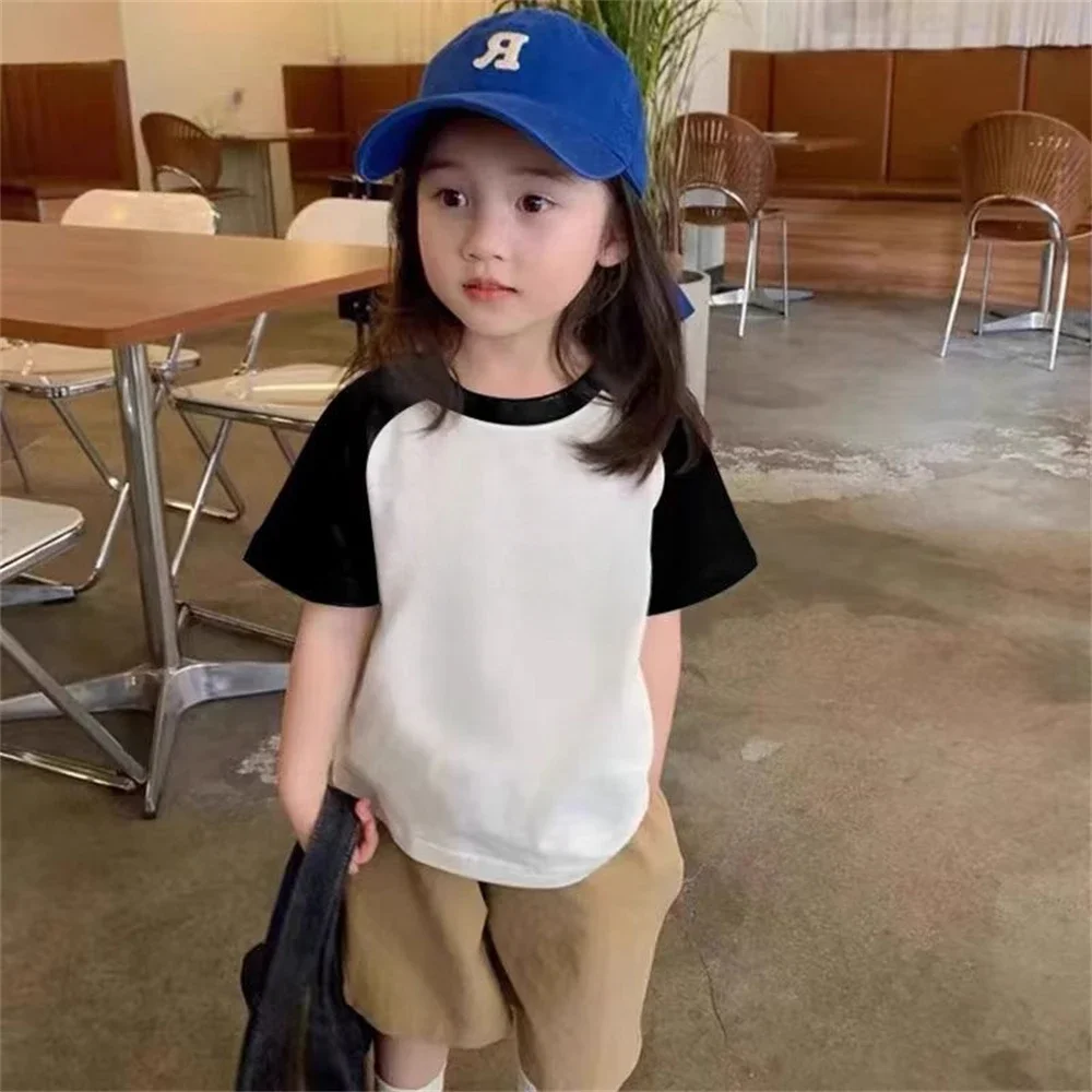 Kids T-shirt Summer Cotton Top Boys Girls Solid Color Blank T-shirt O Neck Round Neck Short Sleeve Pair of White Top T-shirt
