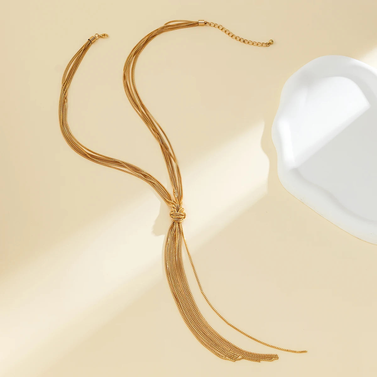 Model Number: Long Chain Knotted Choker with Tassels Necklace for Women