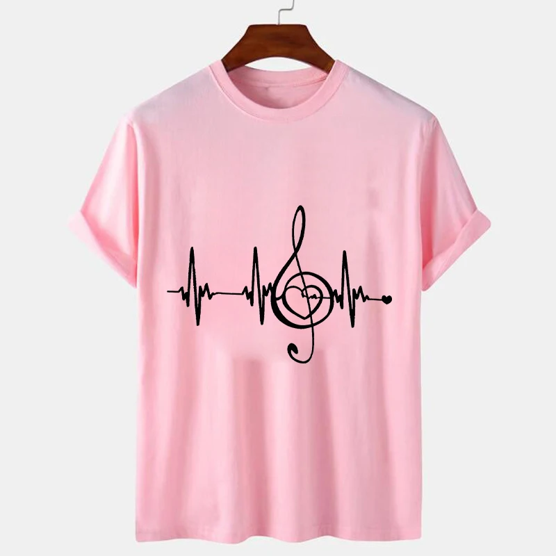 Men's Black Shirts Short Sleeves T-Shirts Oversized Summer Tops Music Note Heartbeat Funny Tshirts for Men Design Music Tee Tops