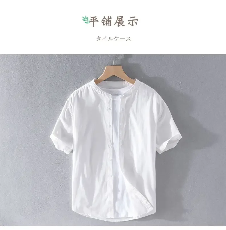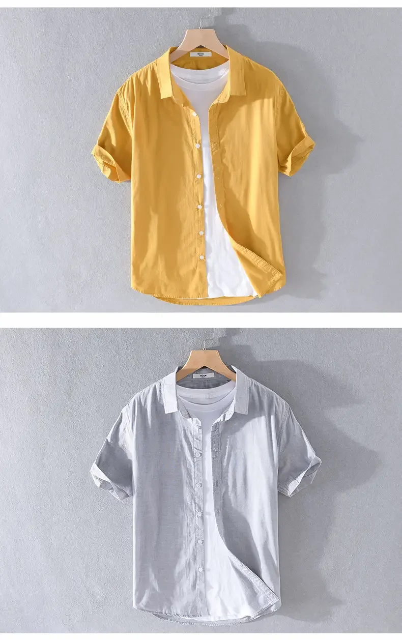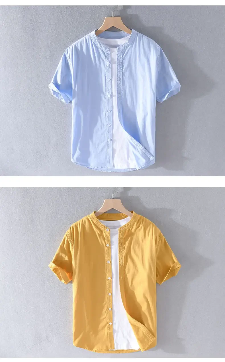 Men's Clothing Short Sleeve Shirt Square Neck Business Casual Cotton Workwear Stylish Summer Top Trendy New