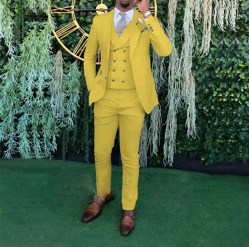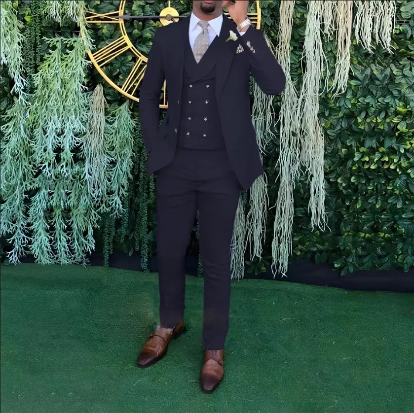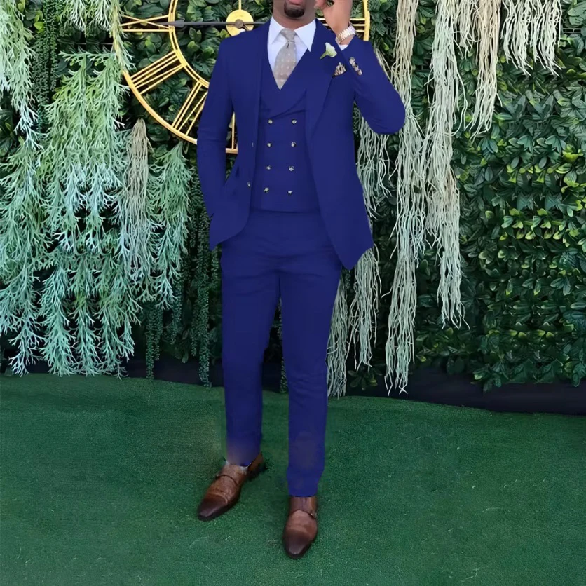 Men's Wedding Banquet 3-piece Suit Double Breasted Custom Men's Suit (Jacket, Vest and Trousers) Party Business Office Wear
