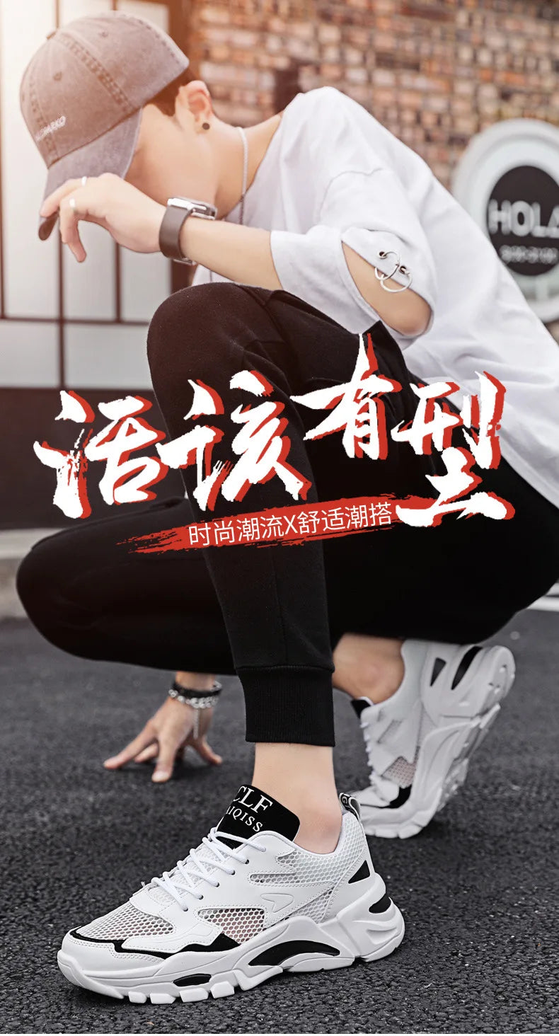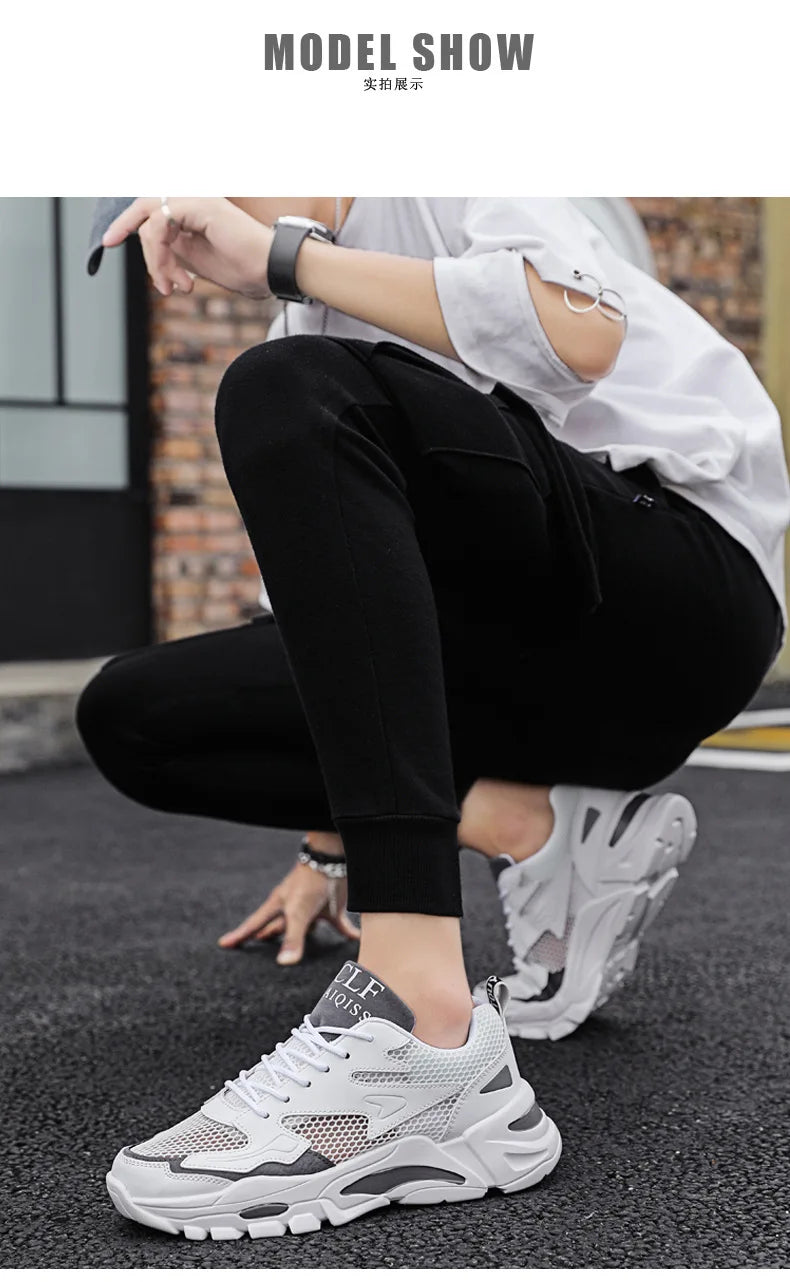 Mesh Men's Sneakers white summer platform sneakers Stylish Lace-up Male Sneaker Breathable Man Tenis Footwear men's sports shoes