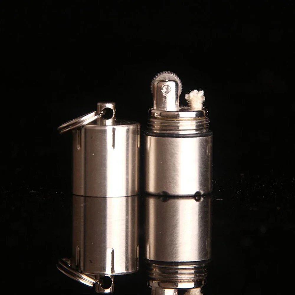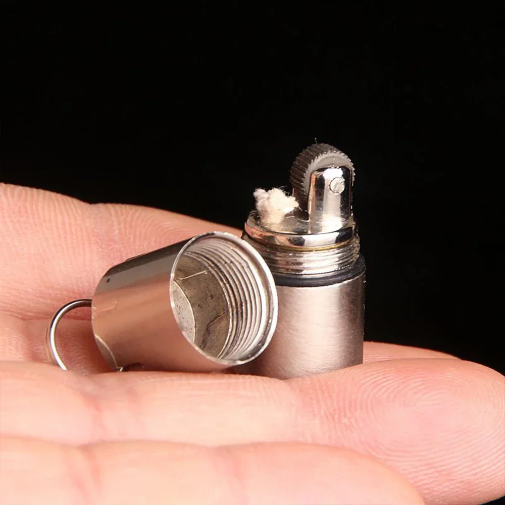 Mini Keychain Lighter Sand Wheel Paraffin Lighter Keychain Outdoor Portable Lighter Ignition Gadgets