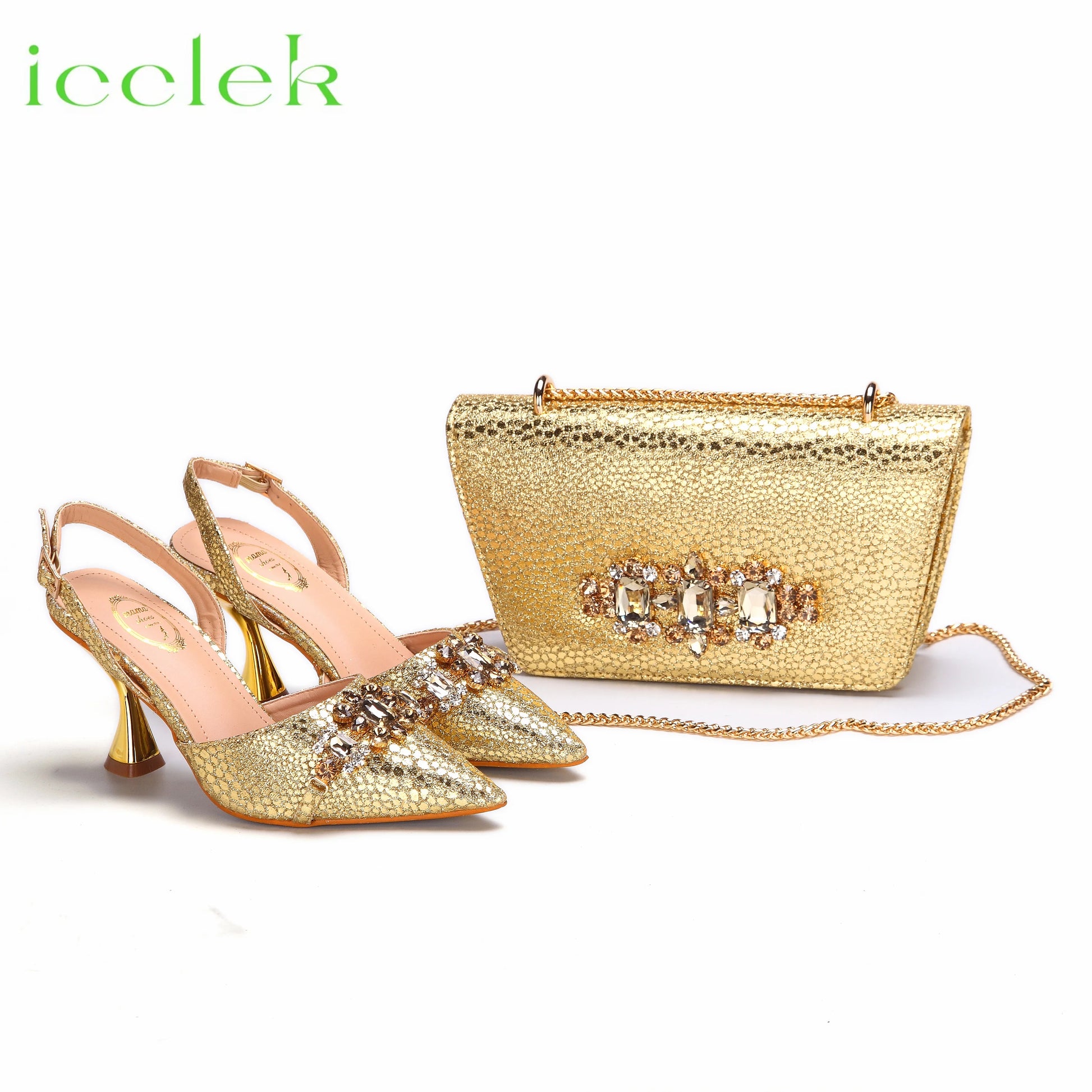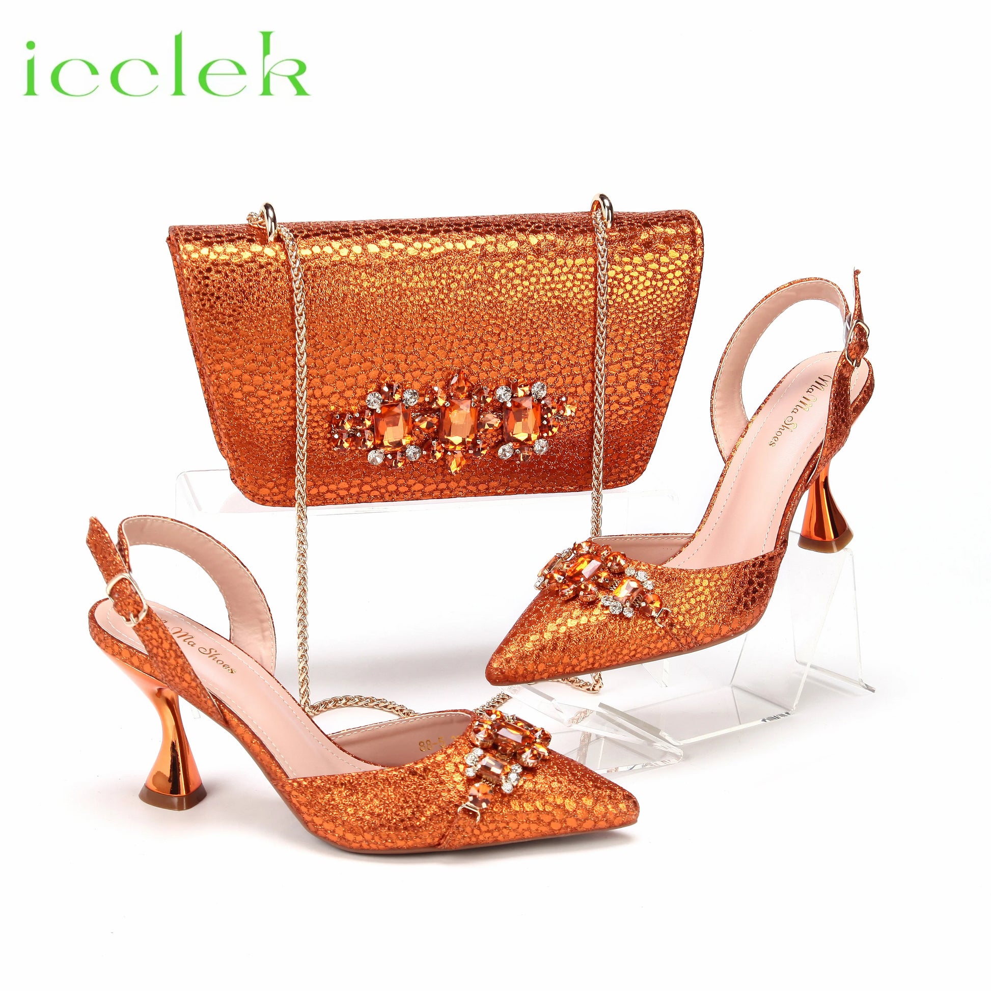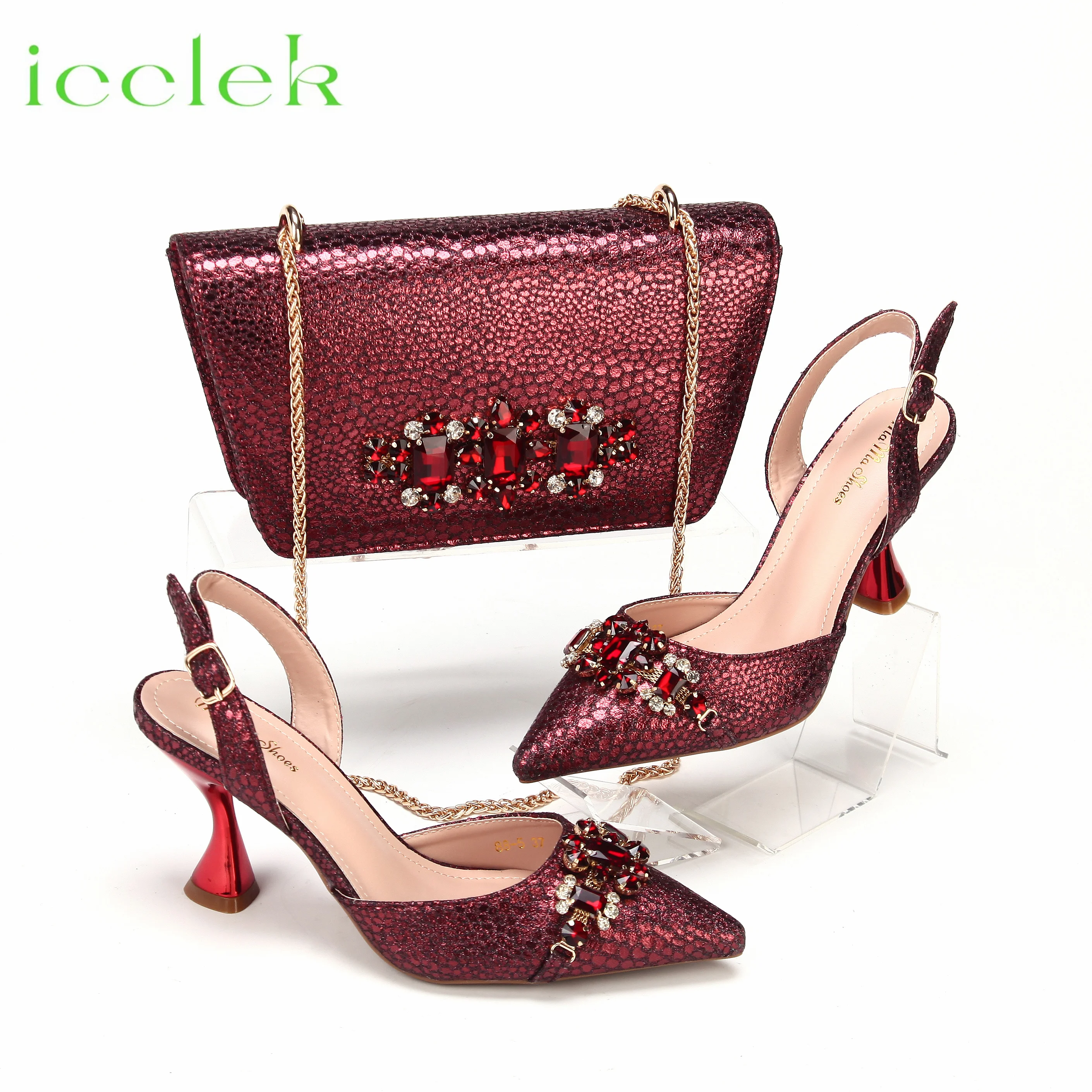 New Arrivals Special Design Pink Color African Women Shoes and Bag Set Pointed Toe Sandals for Wedding Party