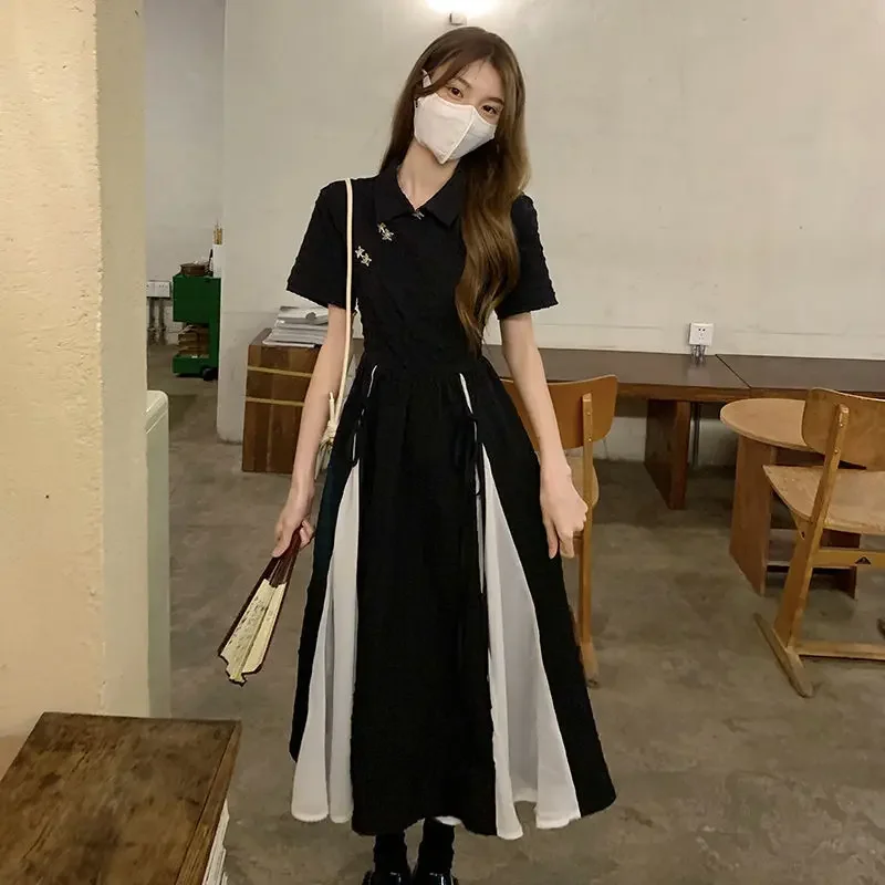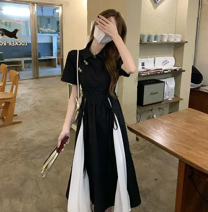 Plus Size New Chinese Style Dress Women's Clothing Summer New Solid Colors Short Sleeves Spliced Long Dress Women's Plus Size...