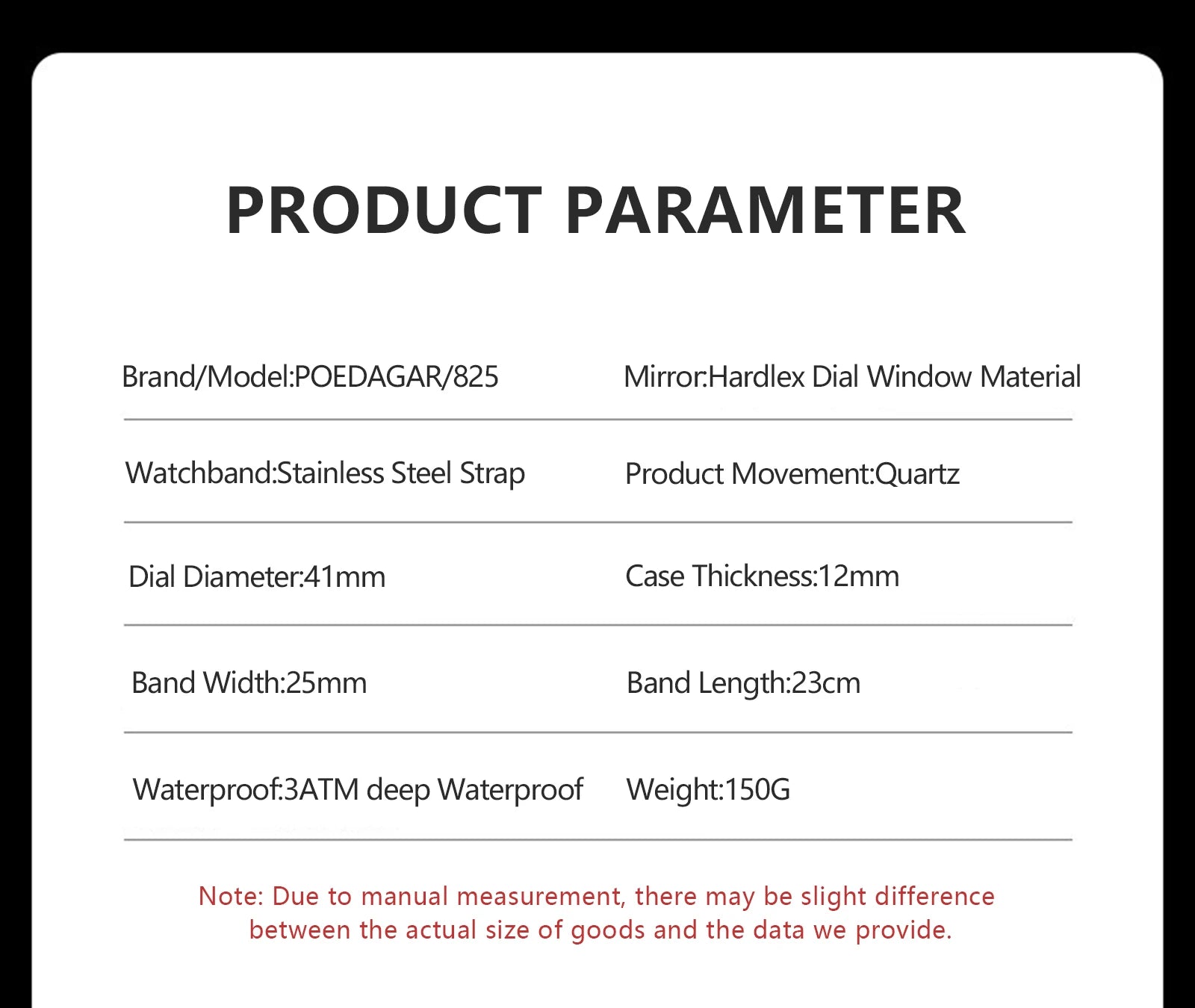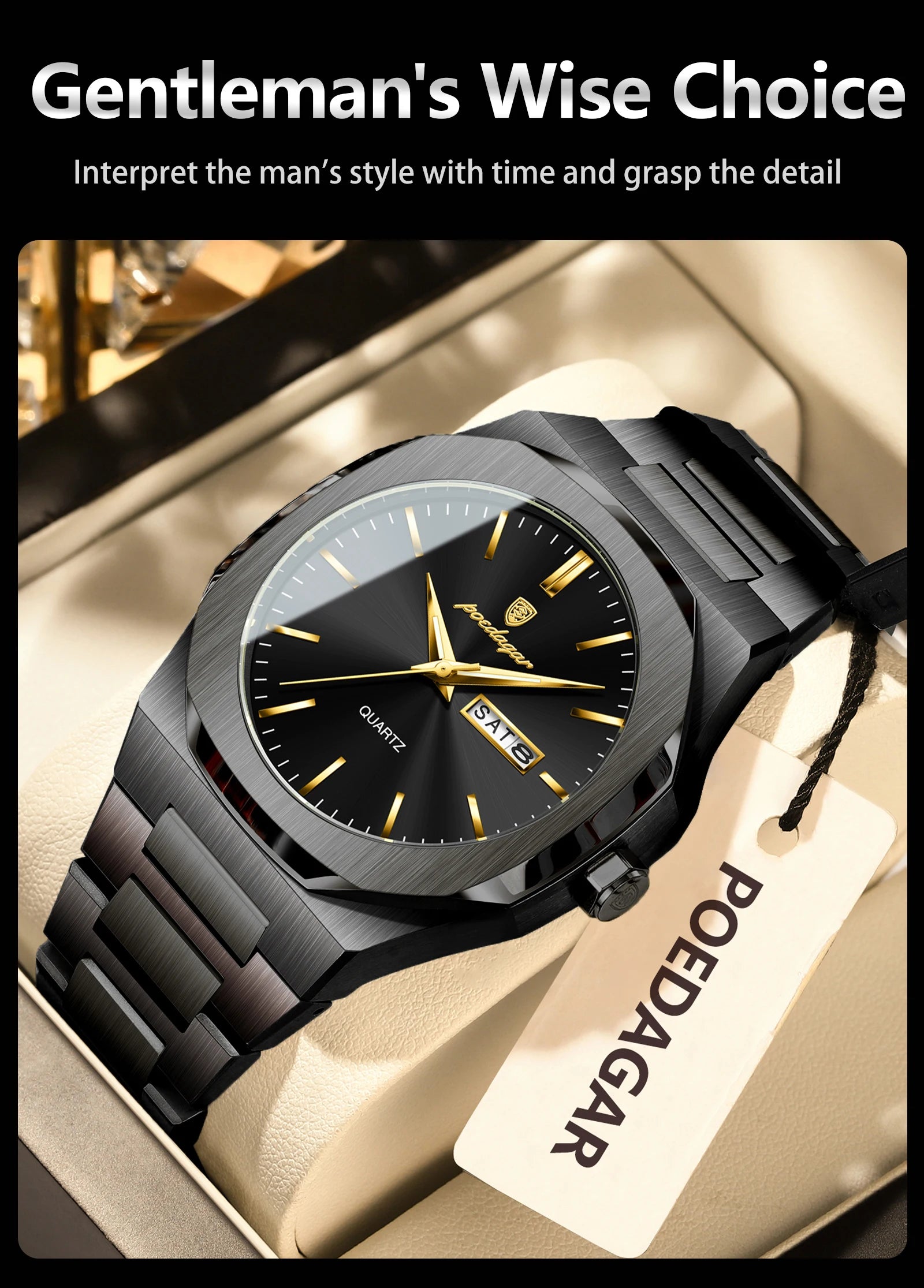POEDAGAR Fashion Brand Male Watch Waterproof Luminous Stainless Steel Watches For Men Date Week Casual Quartz Men's Clock Reloj