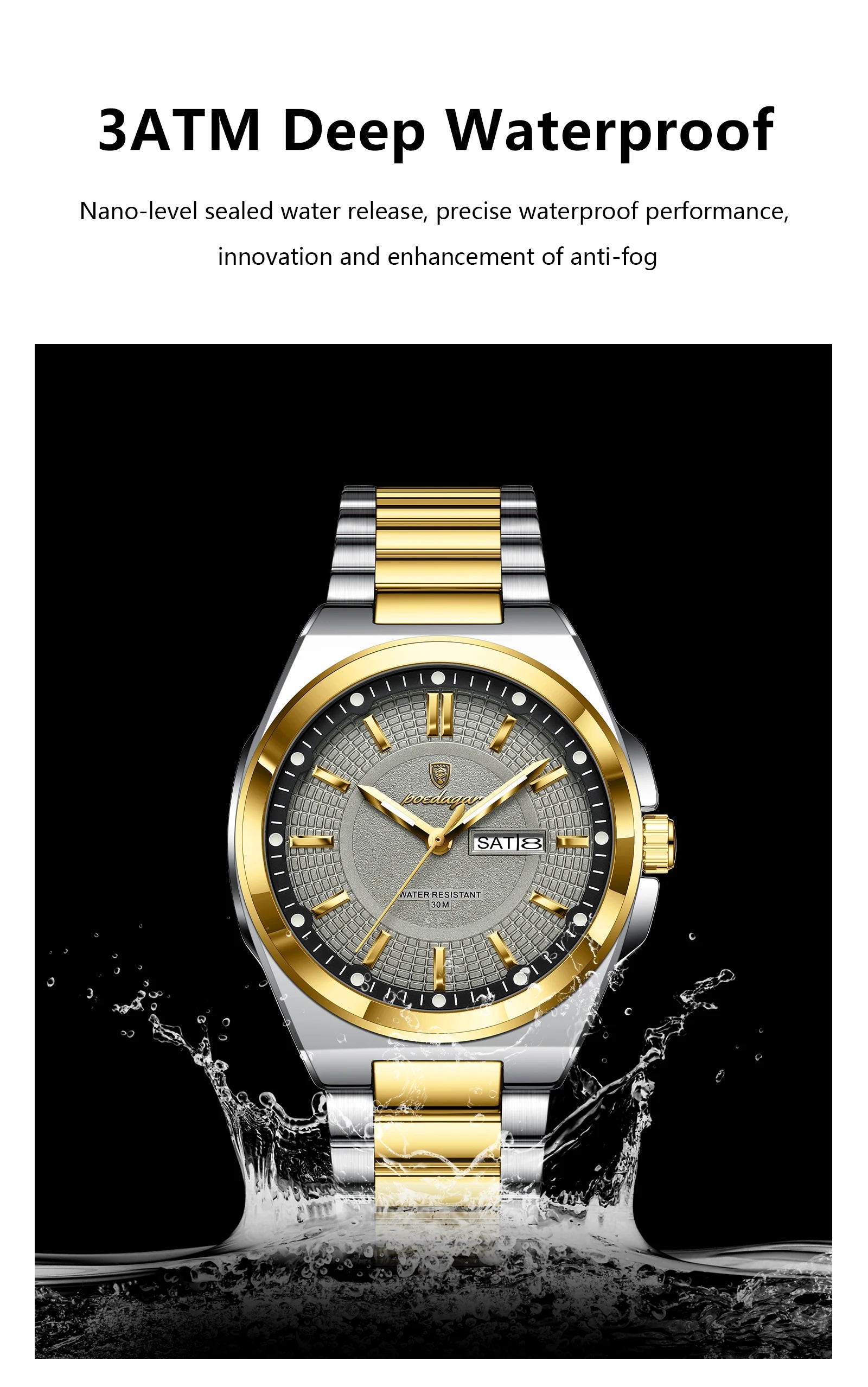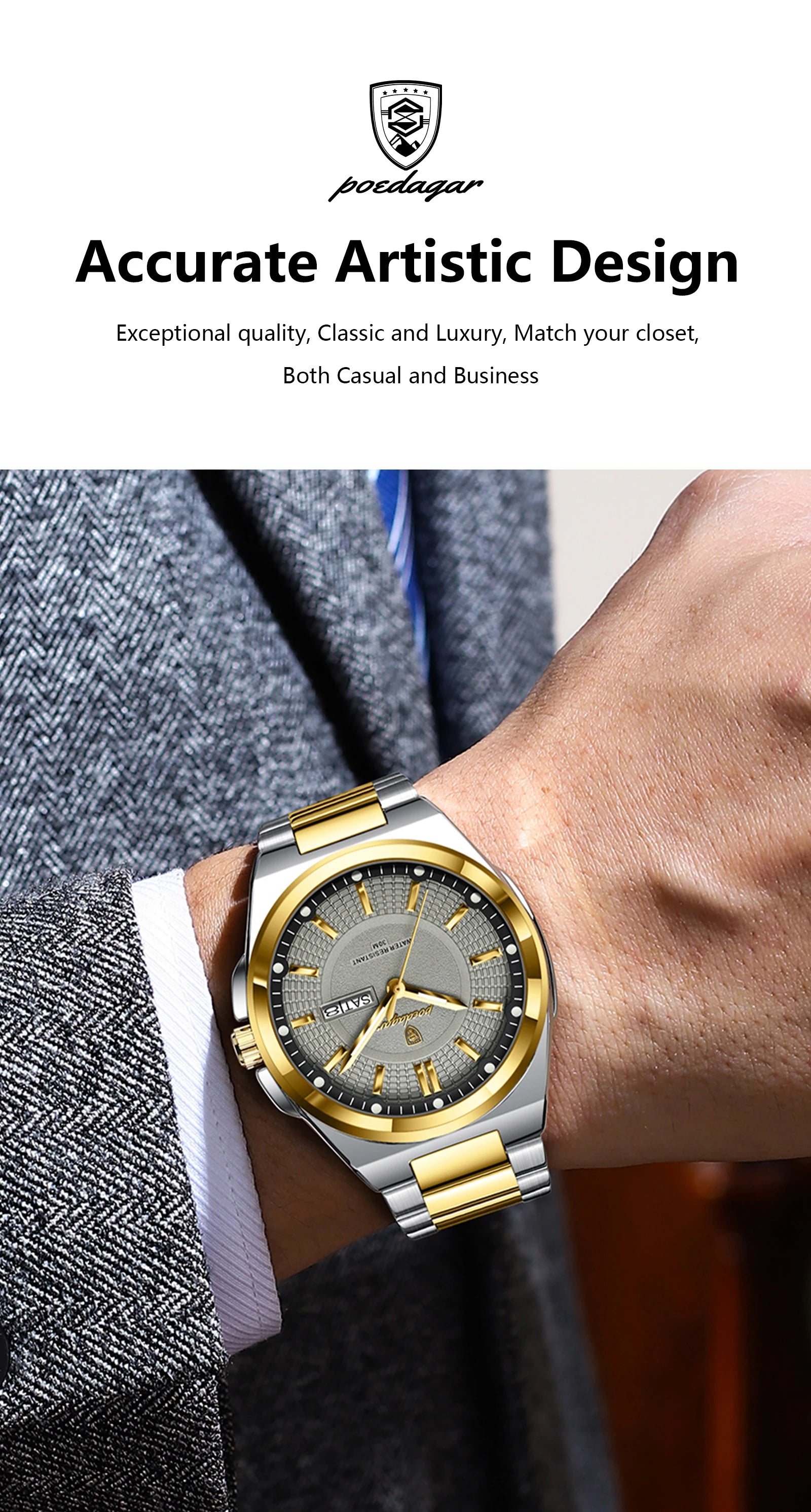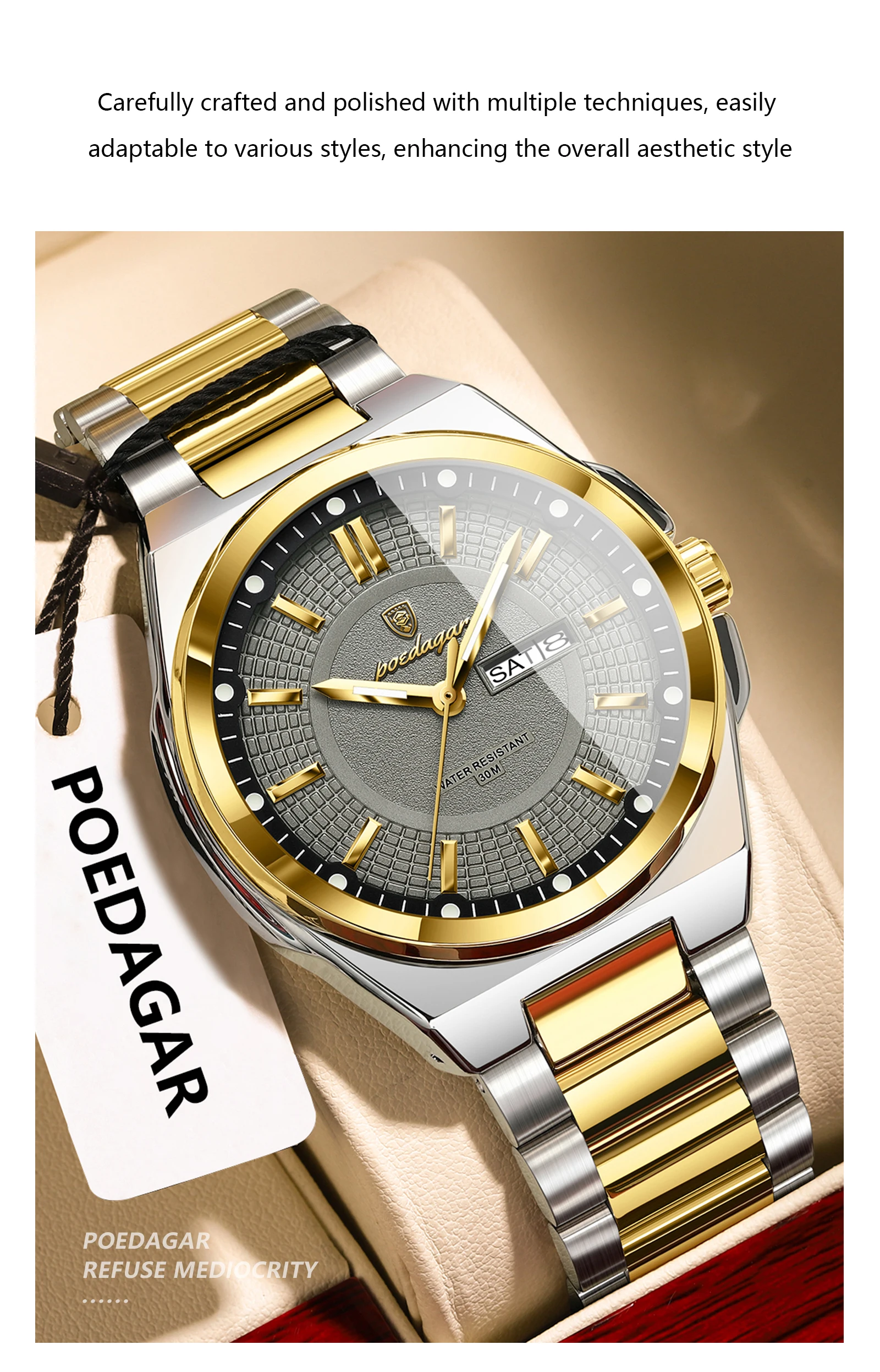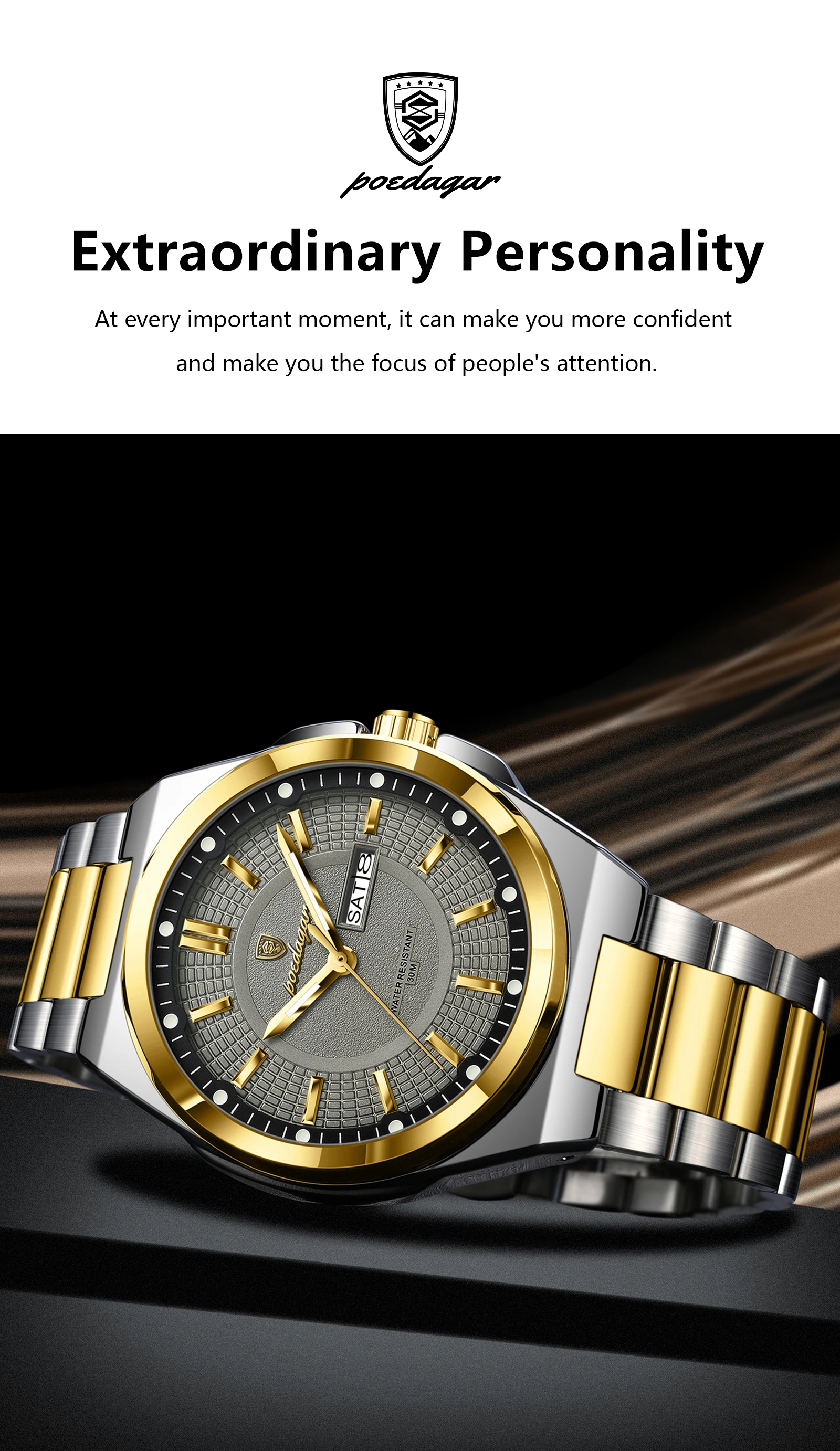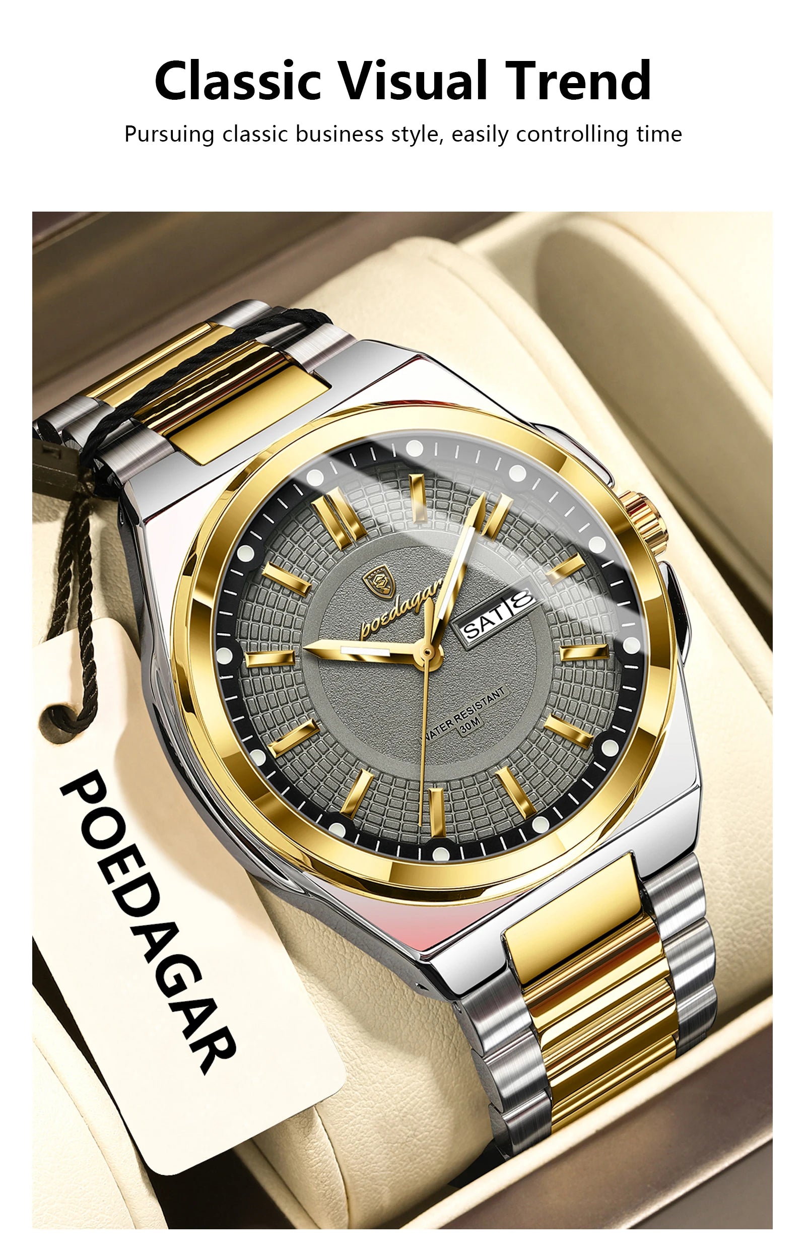 POEDAGAR Luxury Men's Wristwatch Stainless Steel Date Week Man Watch Waterproof Luminous Business Fashion Quartz Watches For Men