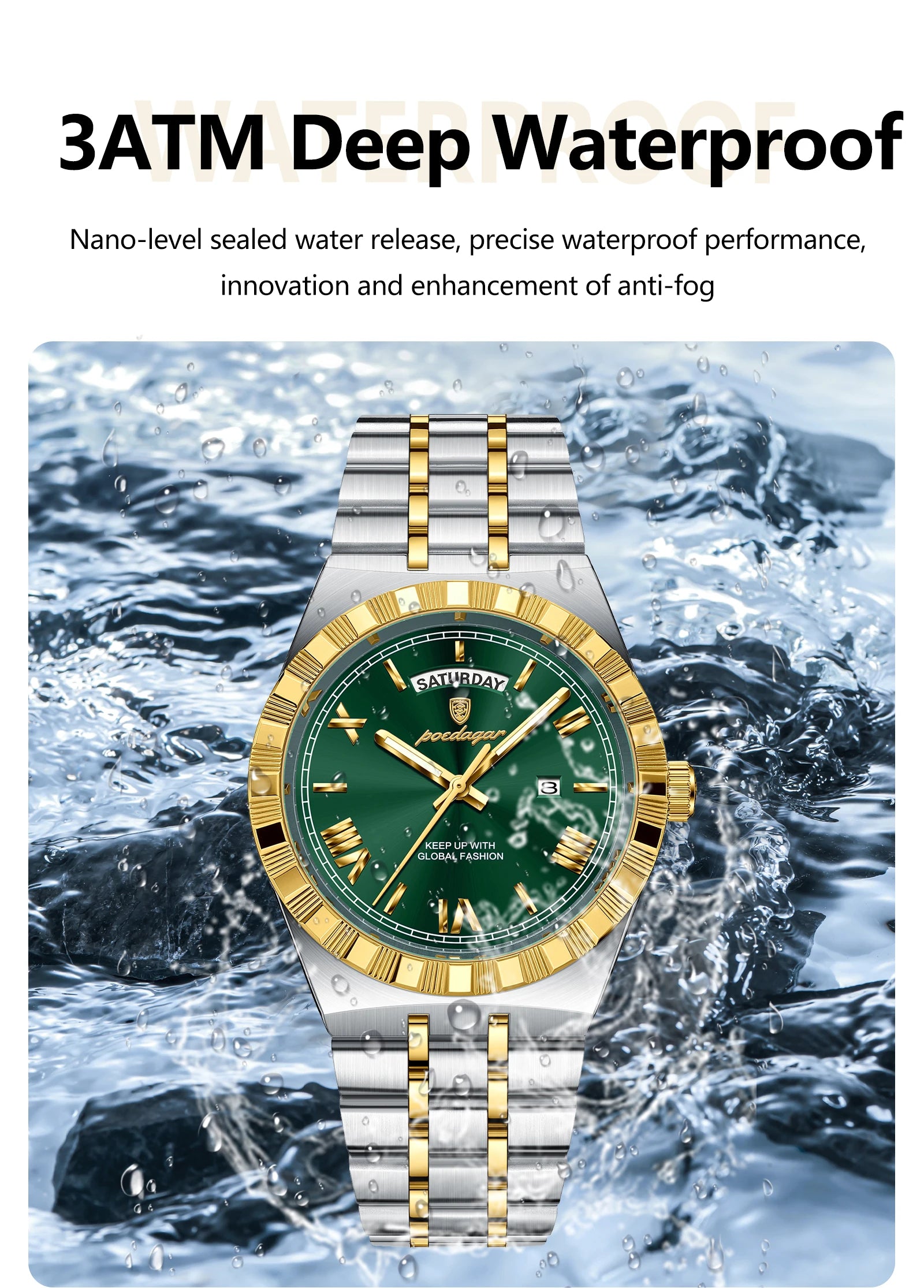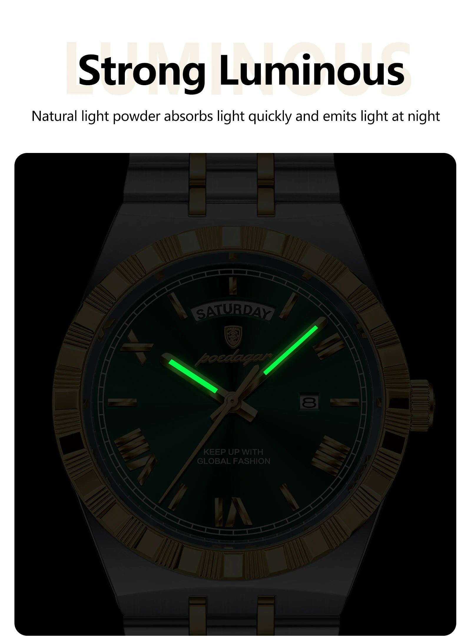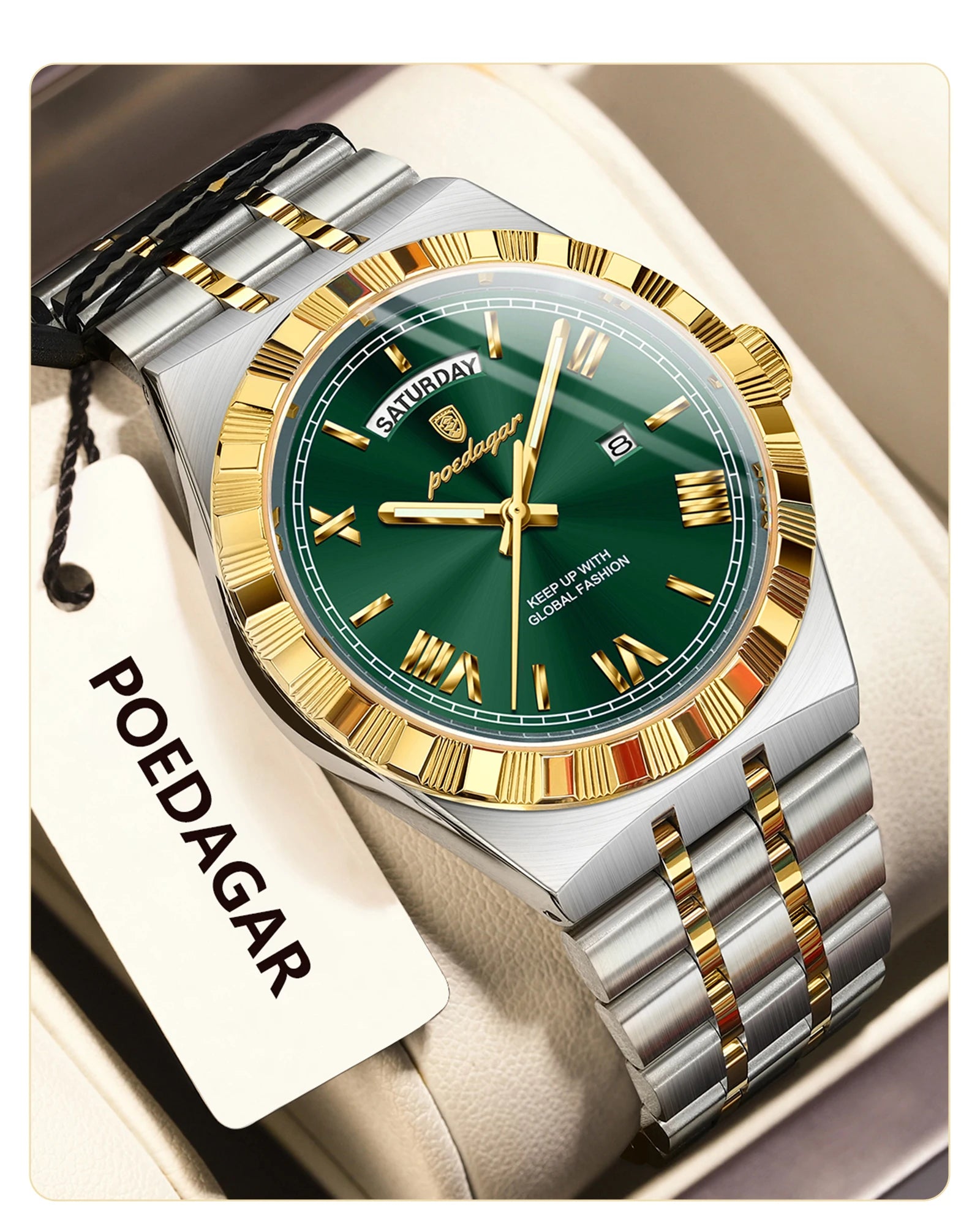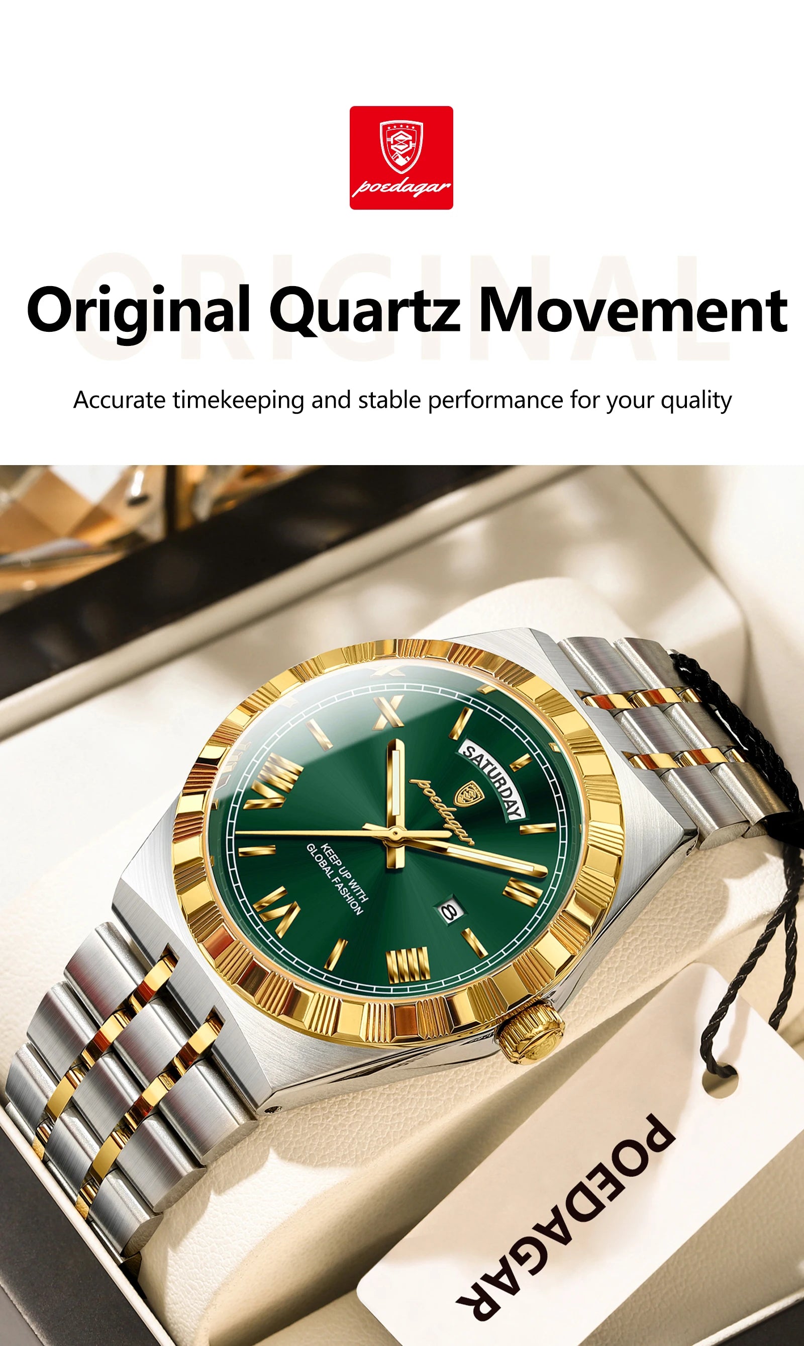 POEDAGAR Original Men's Watch Luminous Waterproof Week Date Man Wristwatch Stainless Steel Business Quartz Watches For Men Reloj