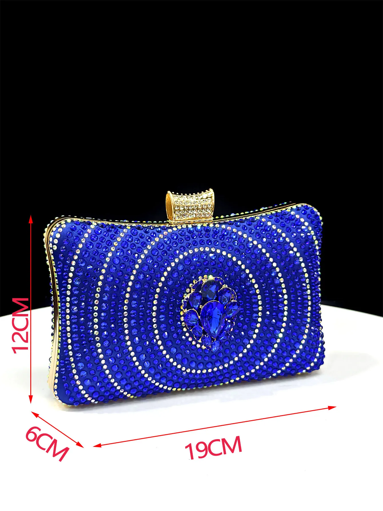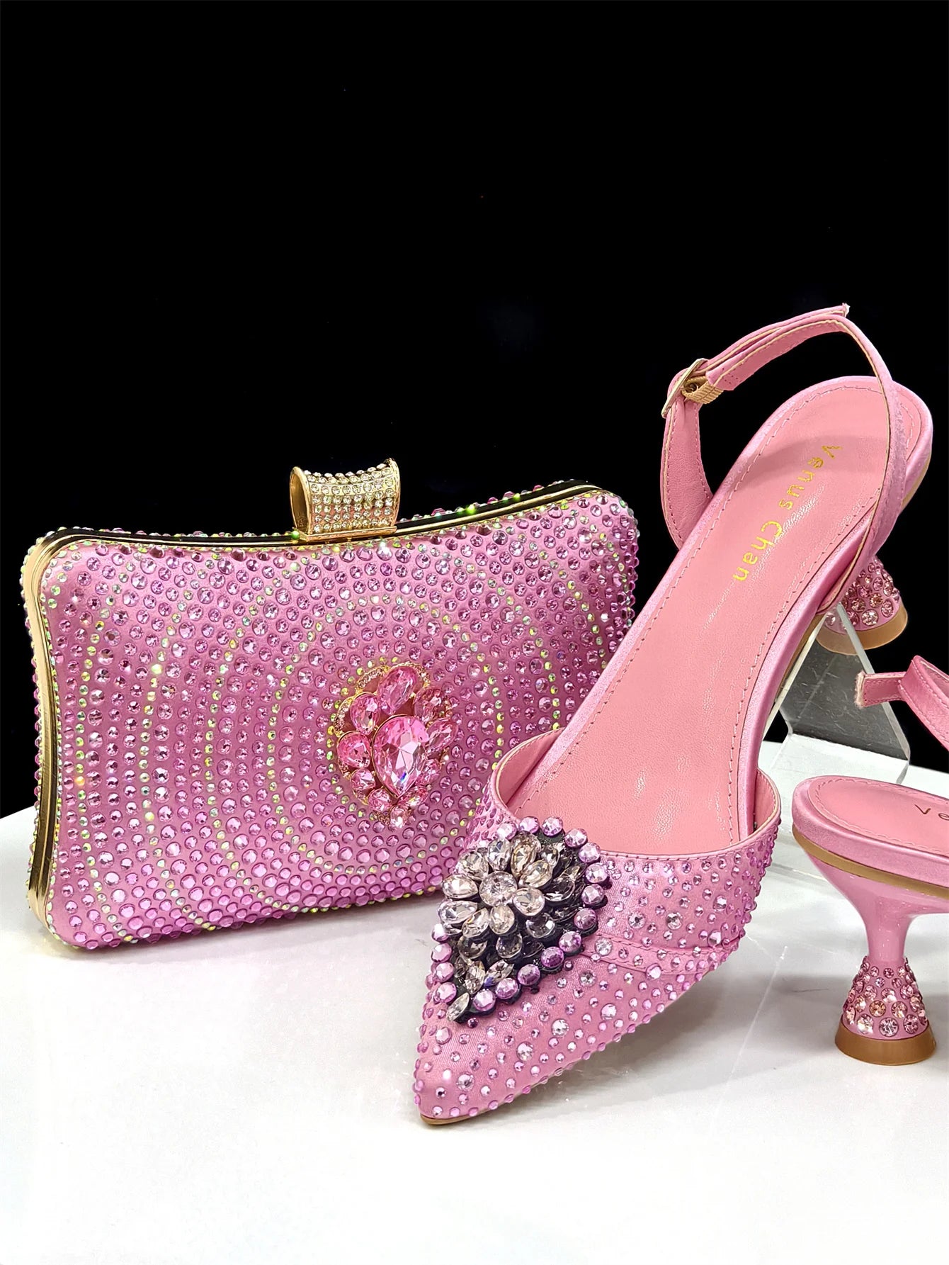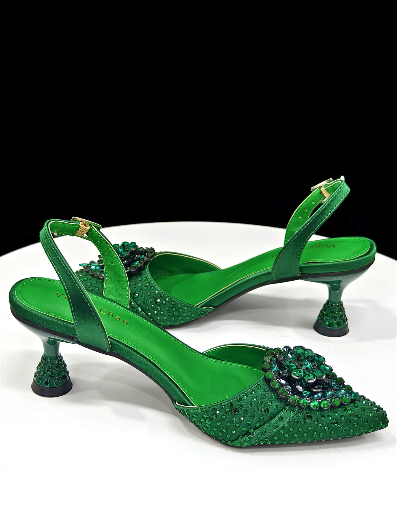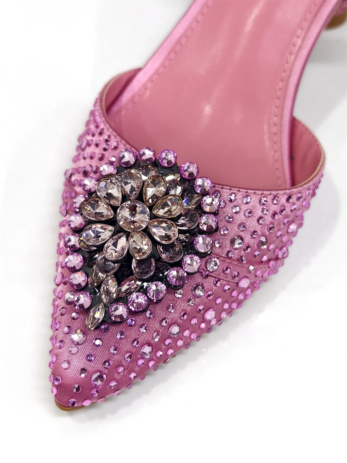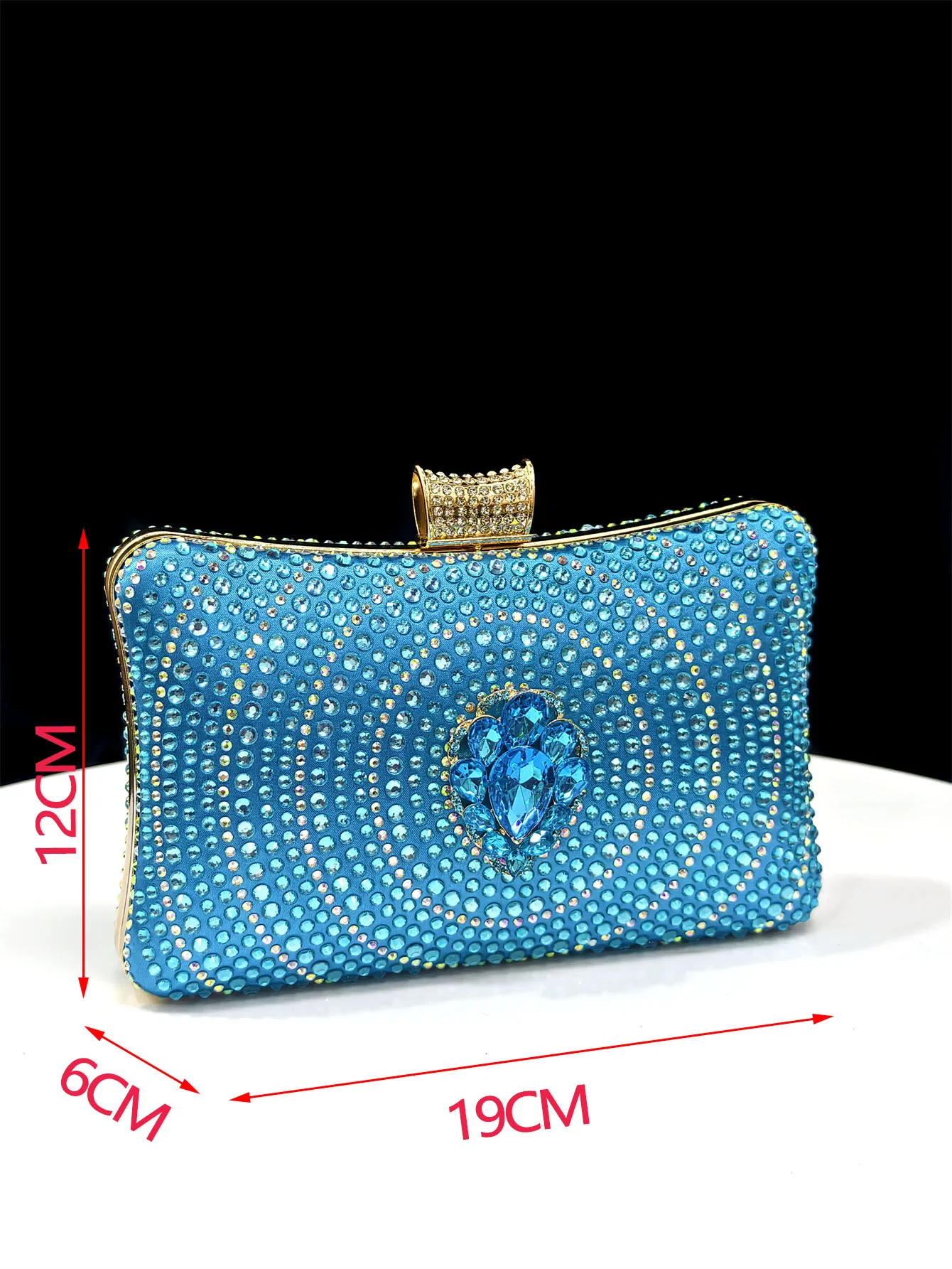 Pointed Toe High Heels Sandals for Women 2025 Elegant Blue Diamond Pumps Italian Shoes and Bags Matching Set