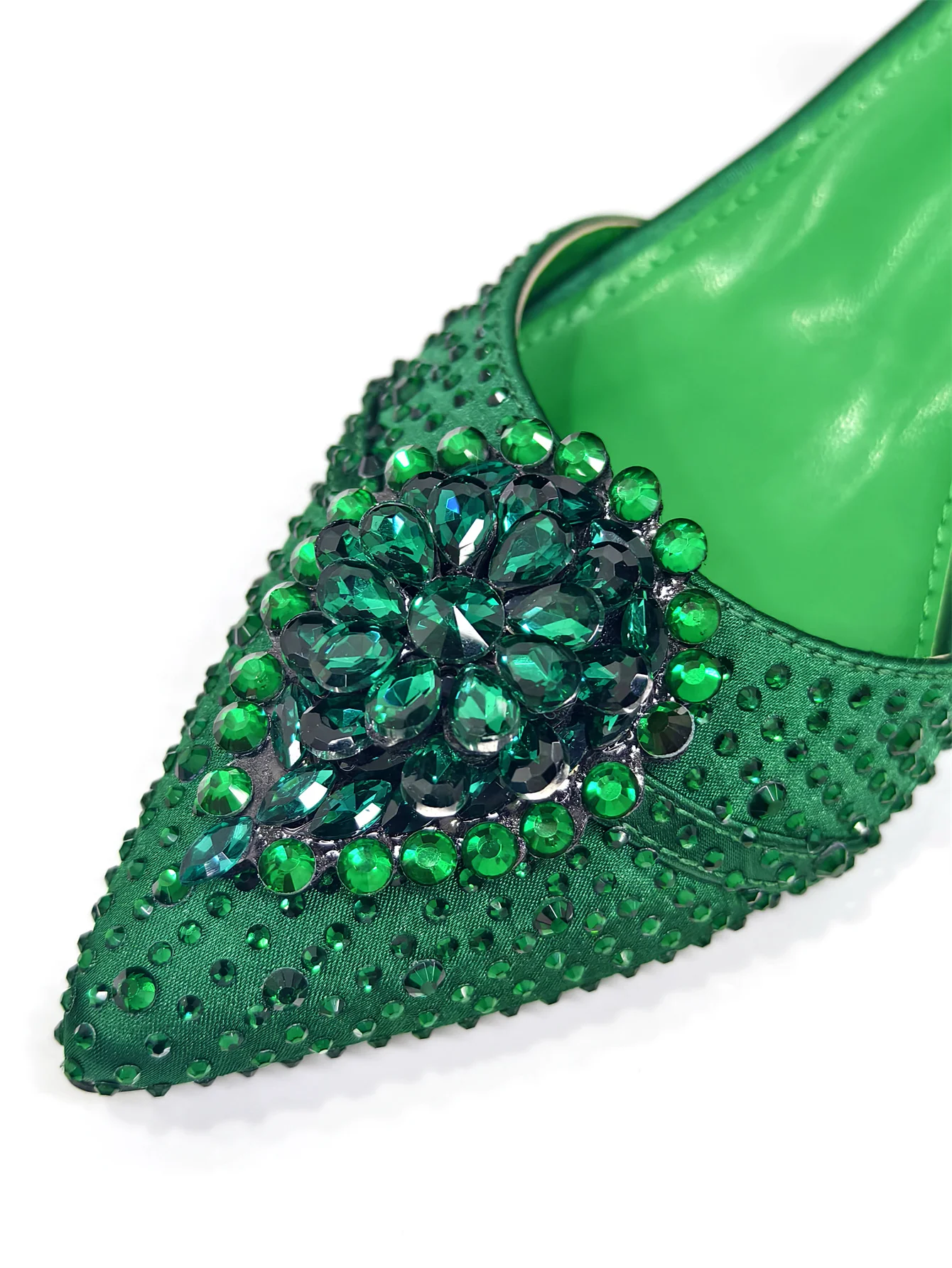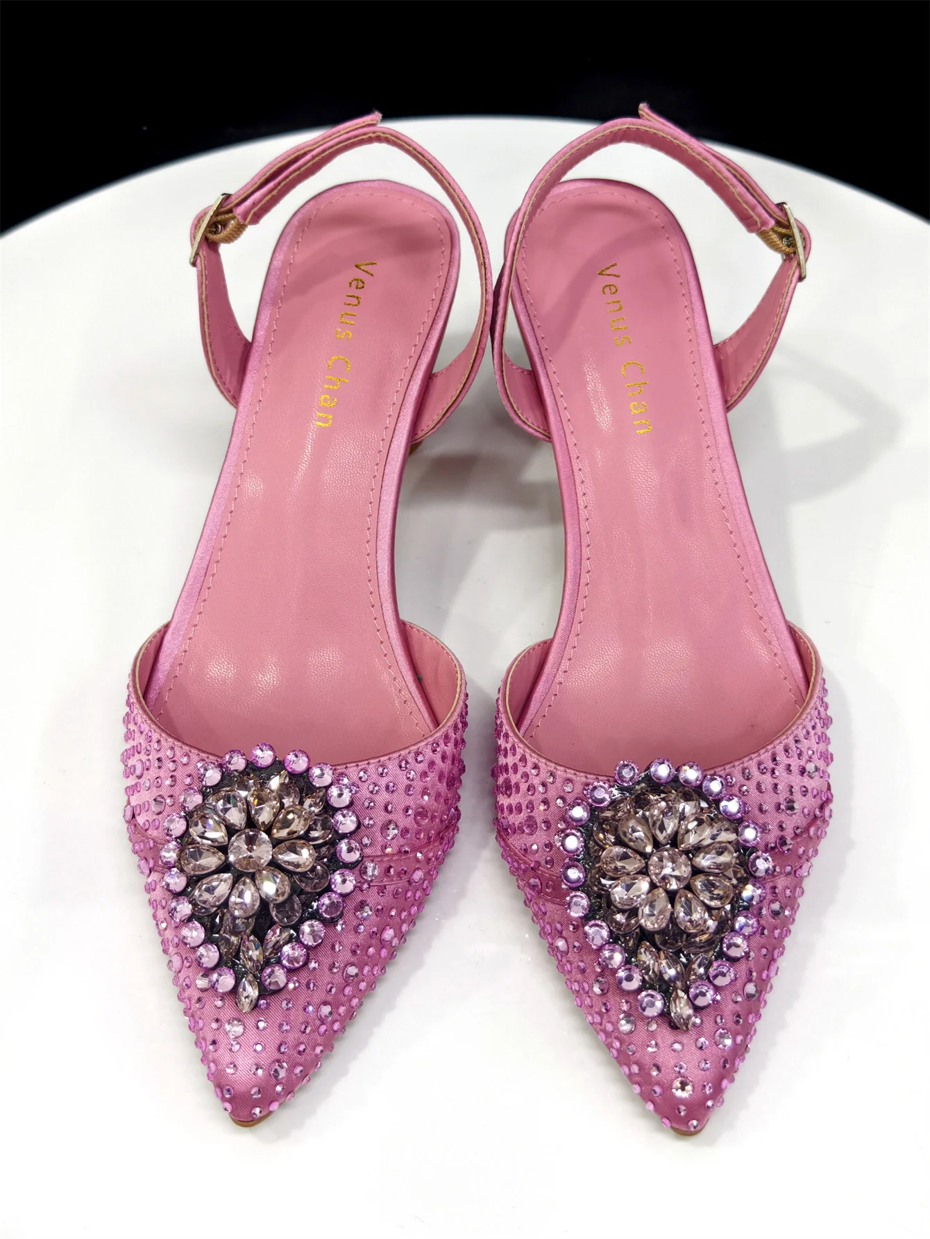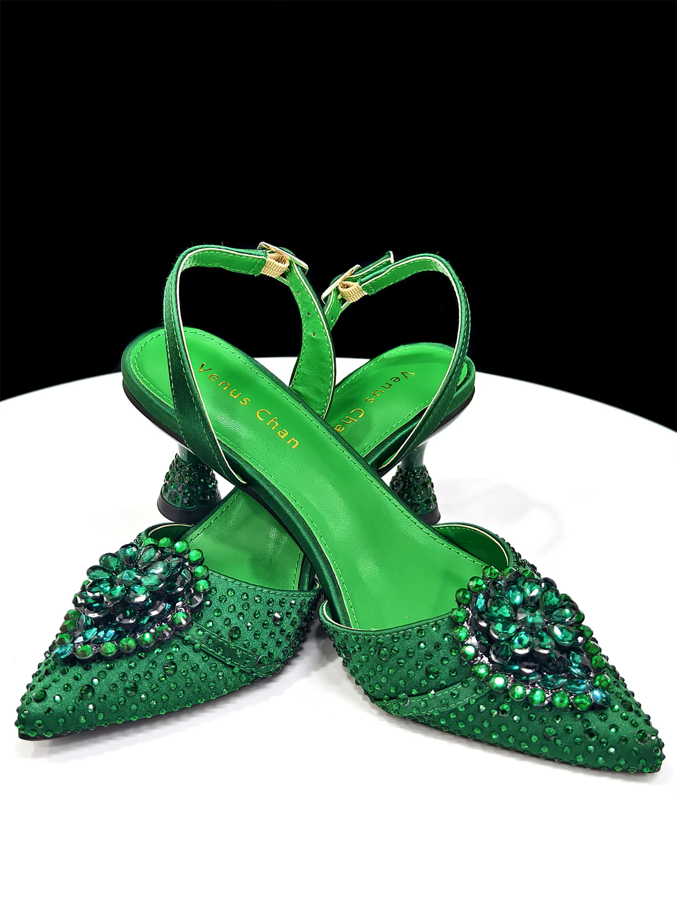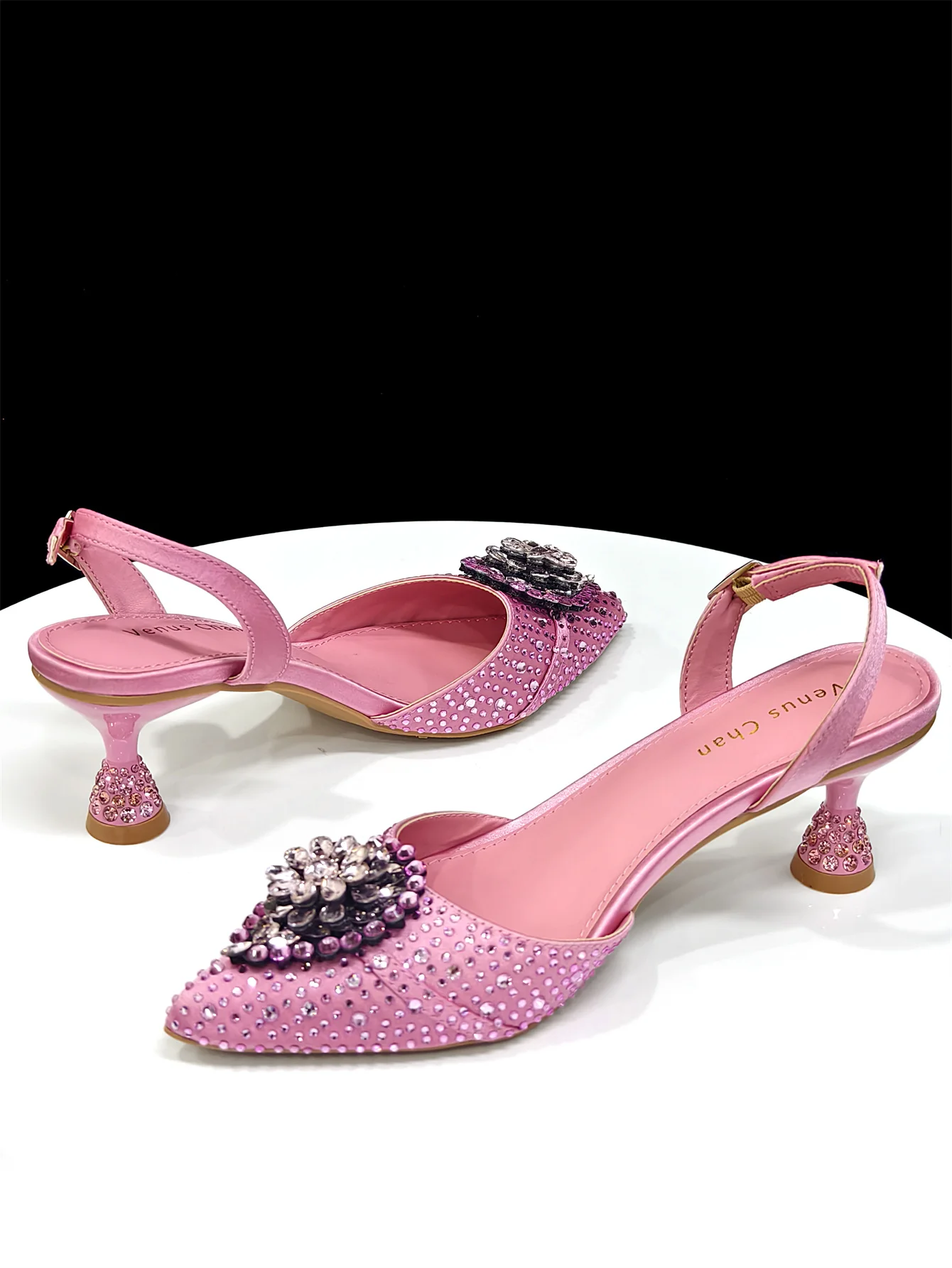 Pointed Toe High Heels Sandals for Women 2025 Elegant Blue Diamond Pumps Italian Shoes and Bags Matching Set