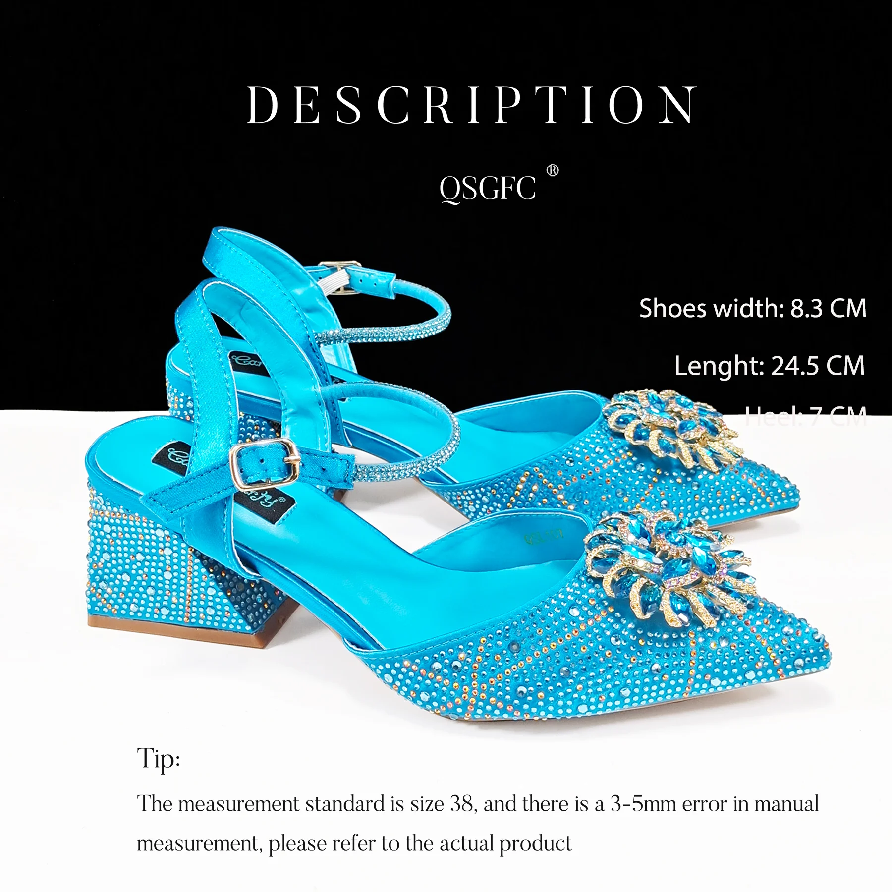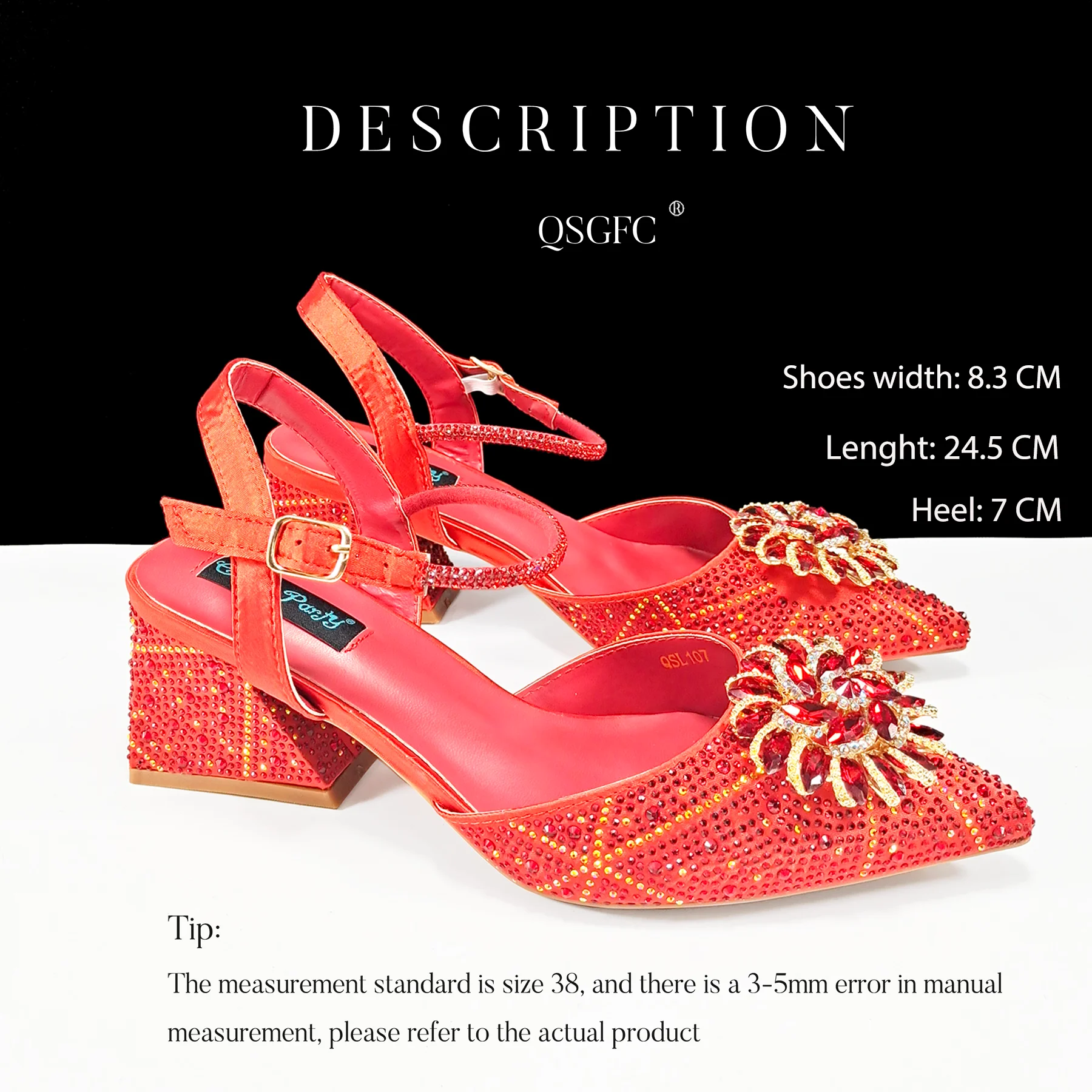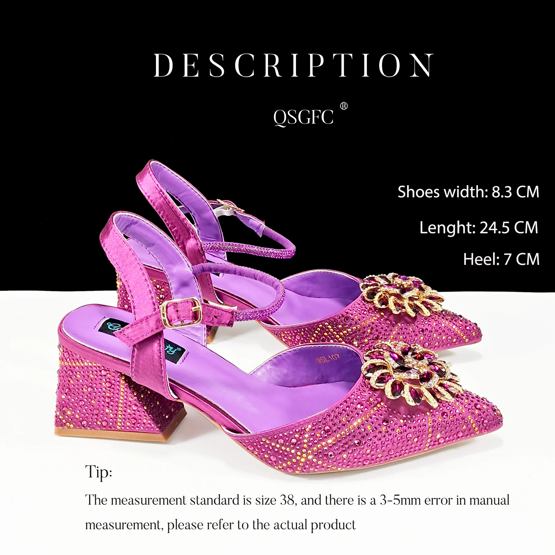 QueenaYan African Ladies Elegant Pointed Toe Shoes with shiny Metal Stand Bag Women Party Shoes or Commuting Shoes and Bag Set