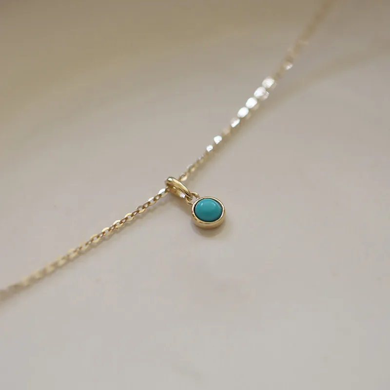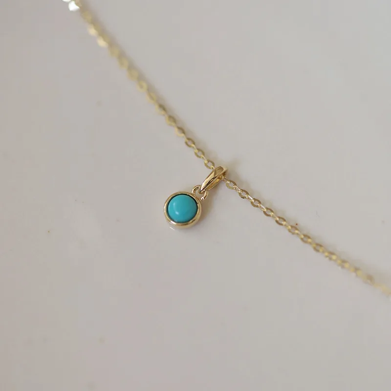 Retro 925 Sterling Silver 14k Gold Plated Necklace for Women Blue Turquoise Mini Geometric Round Pendant Clavicle Chain