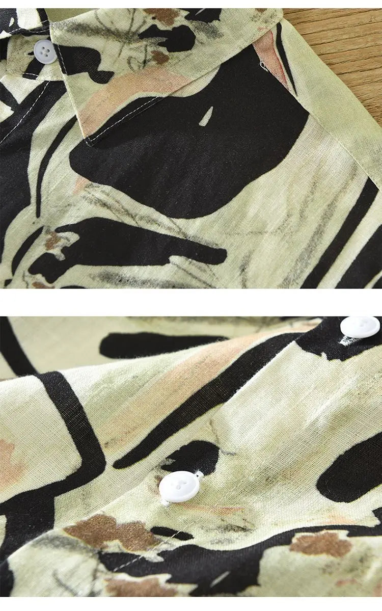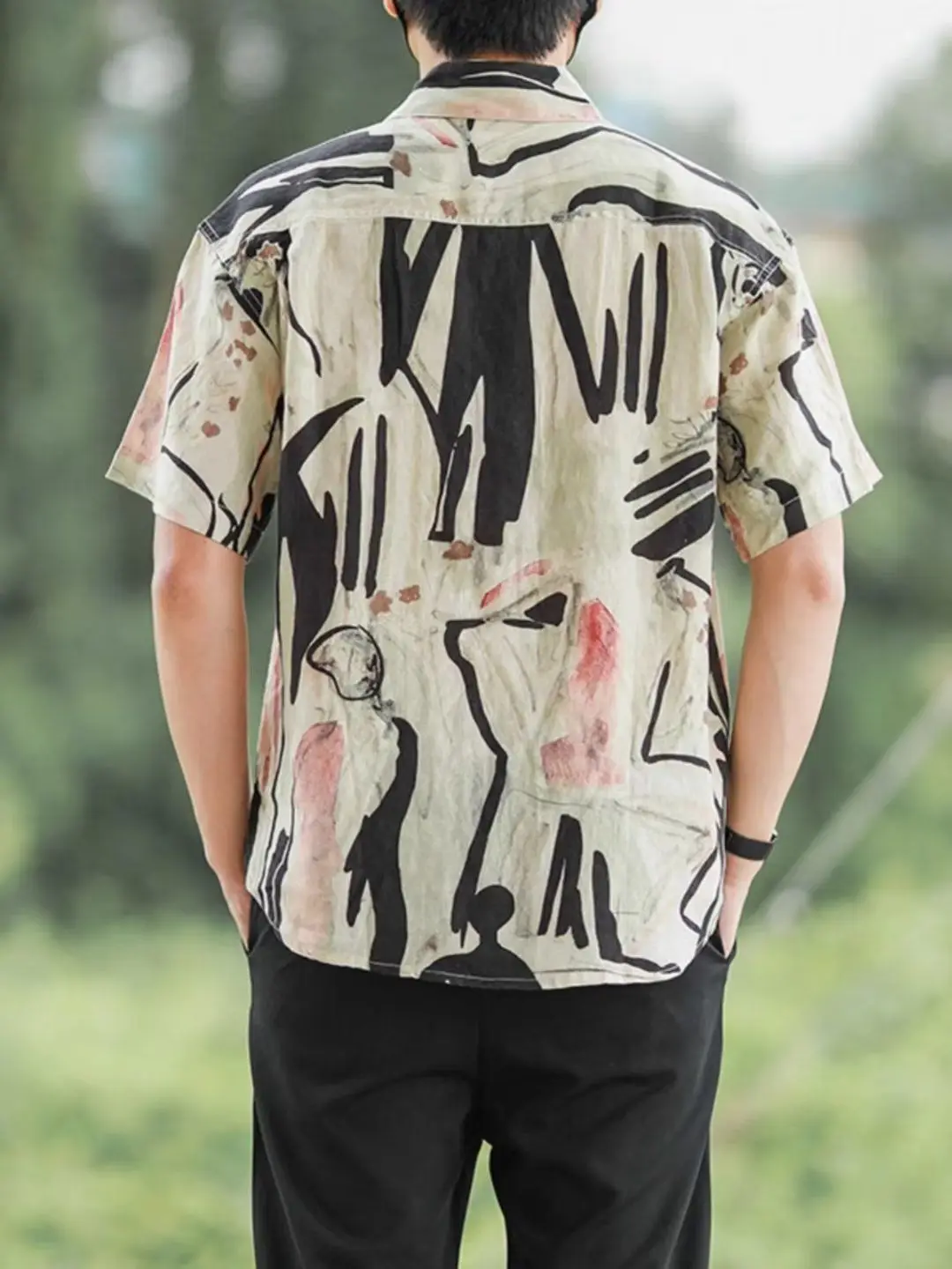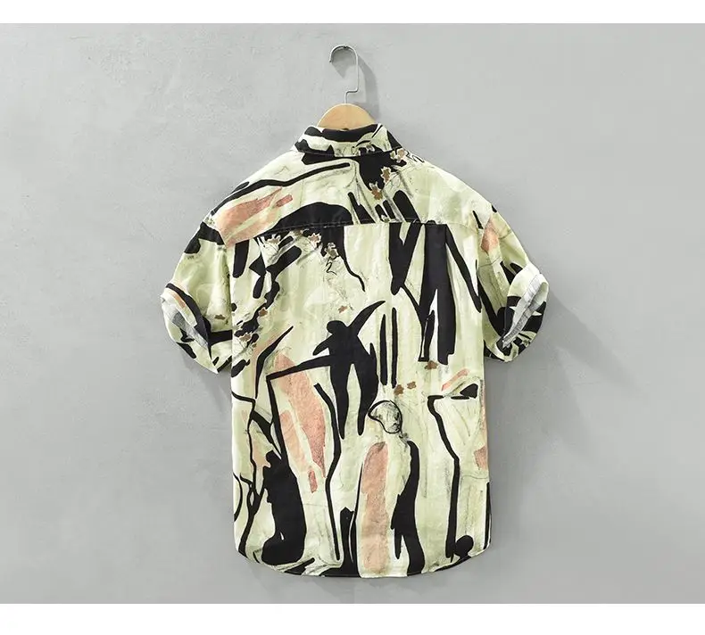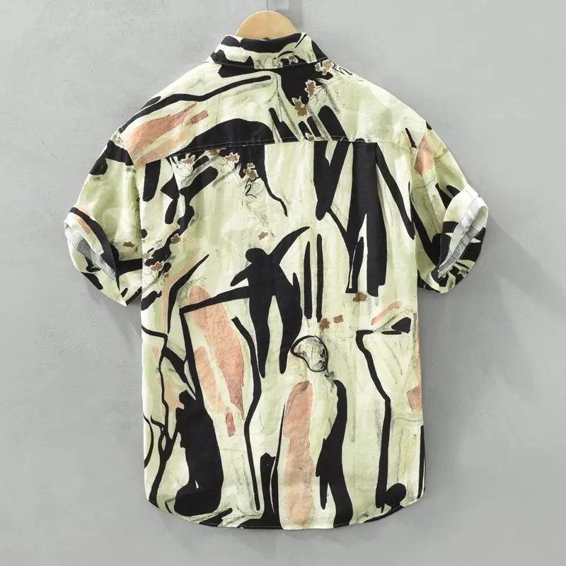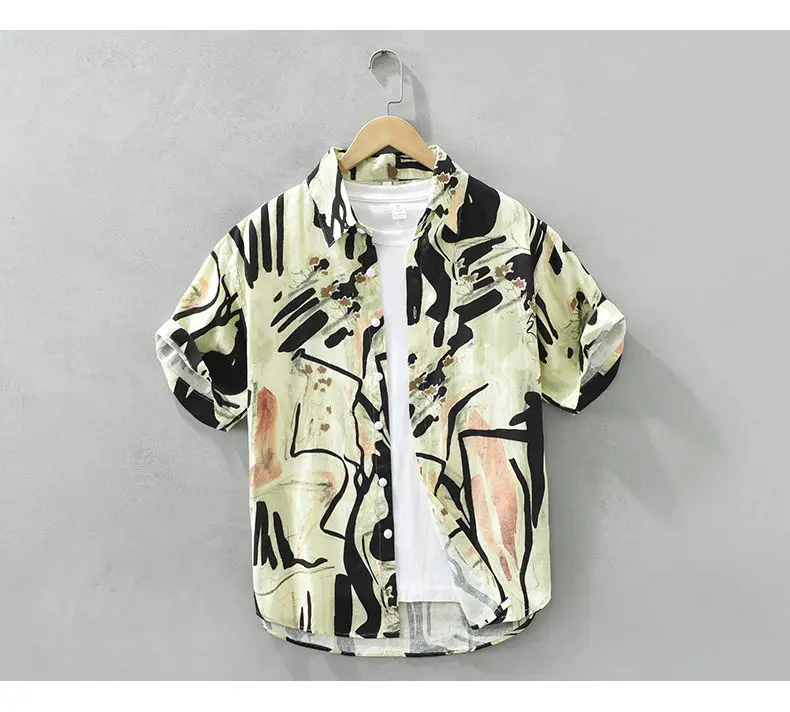 Short Sleeve Fashion Turn-down Collar Simple Comfortable Versatile Selling Trend Temperament Comfortable Shirts Tops Print Men