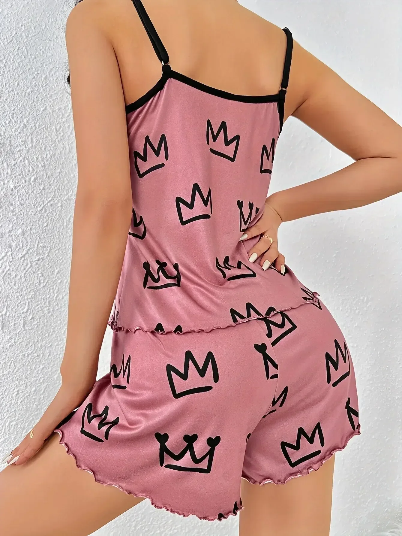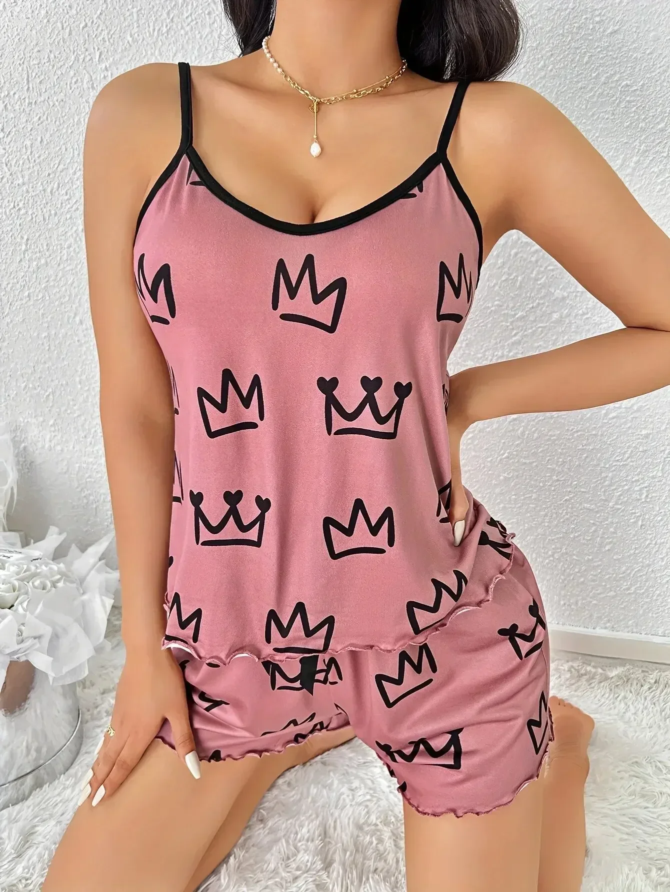 Sleepwear Women 2 Pieces Pajama Set Sexy Lingerie Love Printed Sleeveless Cami Top & Shorts Sets Loungewear Pijamas