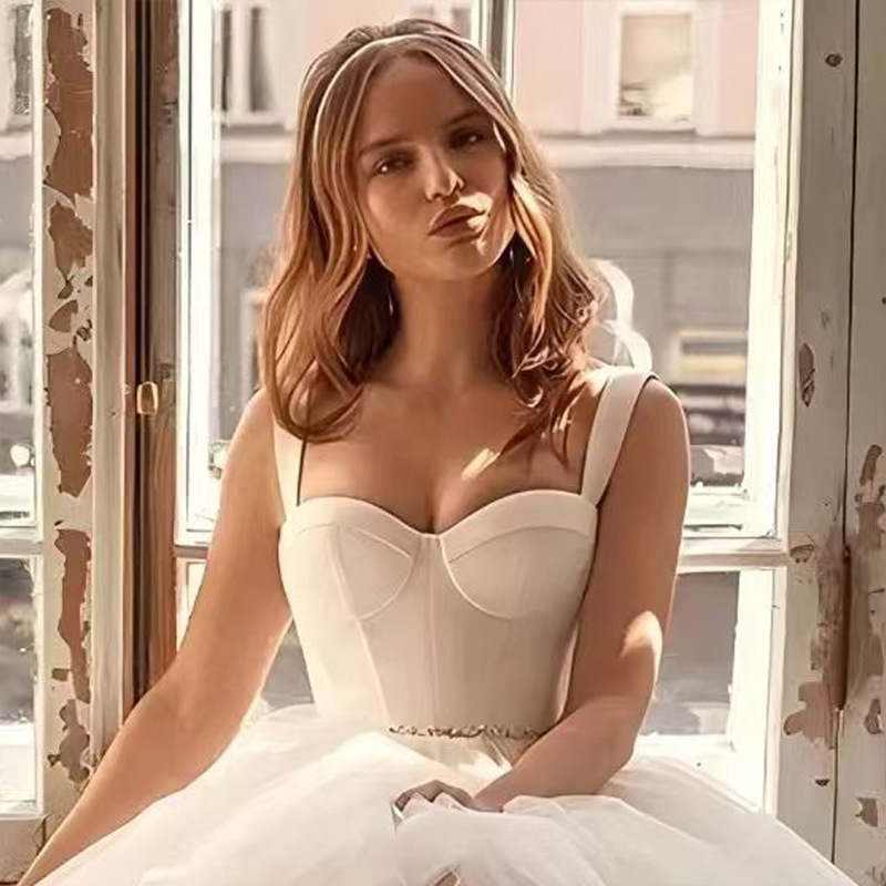 Strap Wedding Dress Engagement License Simple French Slimming Dress